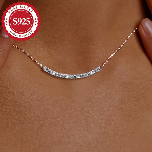S925 Sterling Silver Heart Pendant Necklace for Women, Simple Luxury Style, Silver Plated, Hypoallergenic, Lightweight 3.4g, Clavicle Chain for Daily and Party Occasions