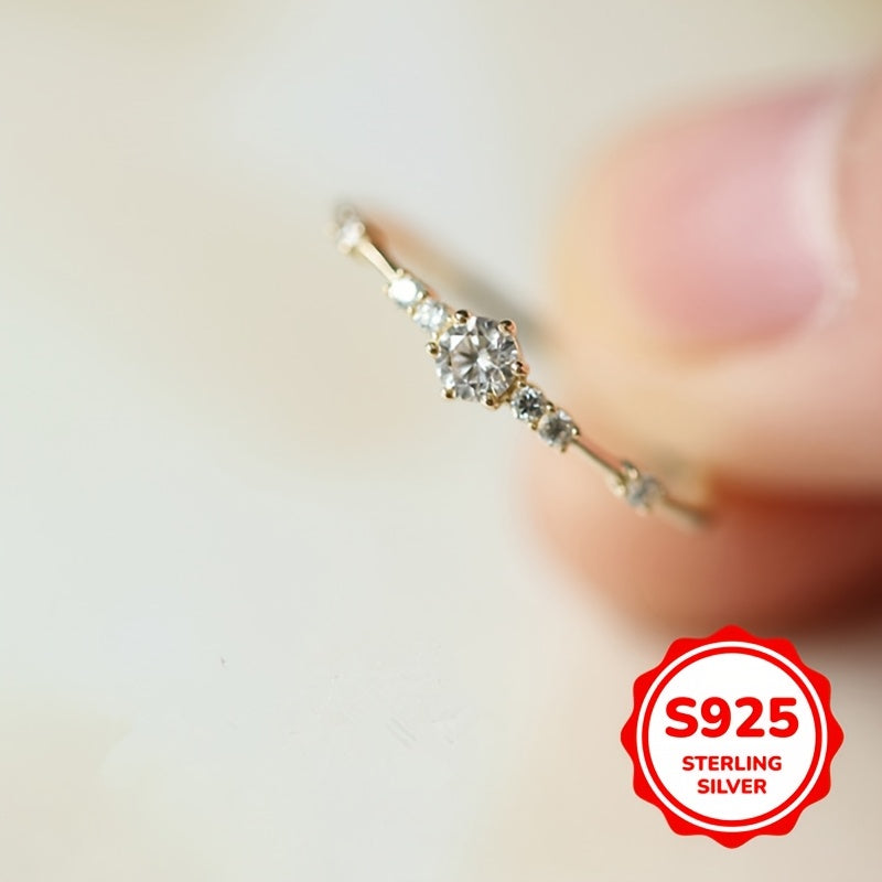 1.2g 1pc 925 Sterling Silver Delicate zirconia Ring Women'S Birthday Valentine'S Day Jewelry Gift