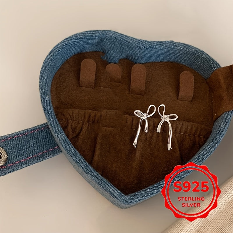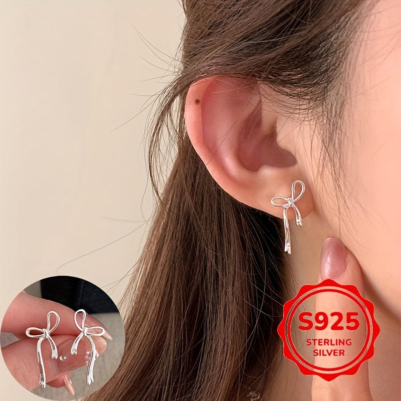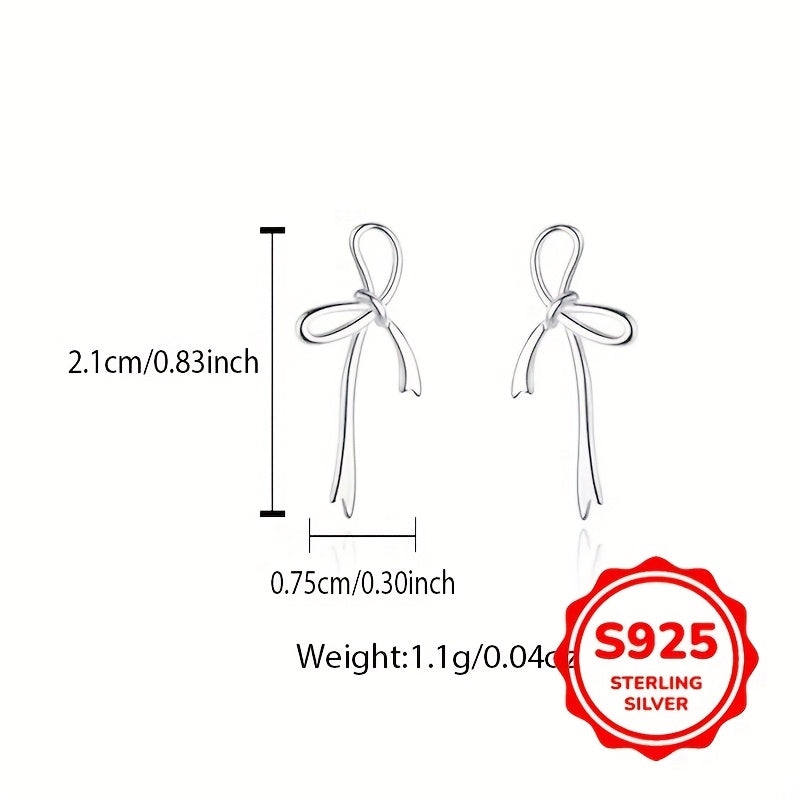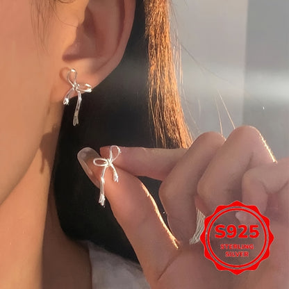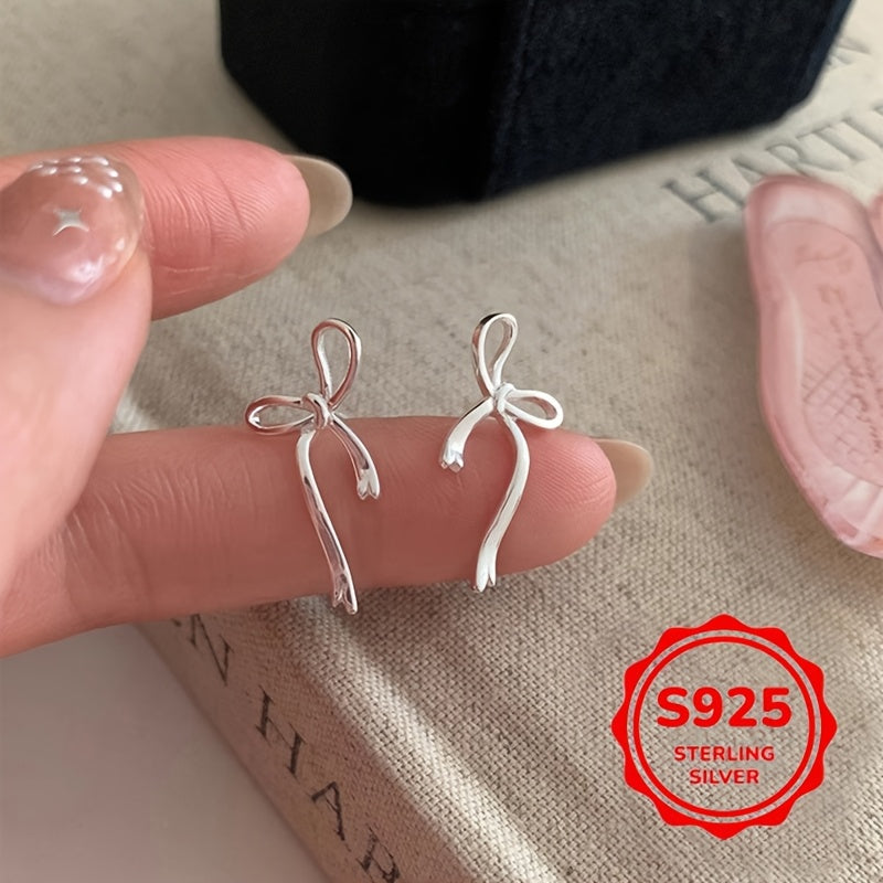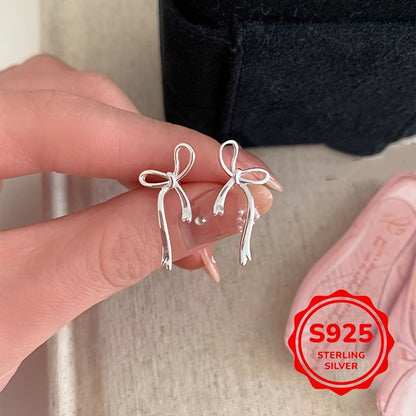 1 Pair S925 Sterling Silver Bowknot Hollow-Out Stud Earrings, Cute Simple Style, Daily & Gift Occasion, Thanksgiving Day Suitable, All Seasons Fit, 1.1g