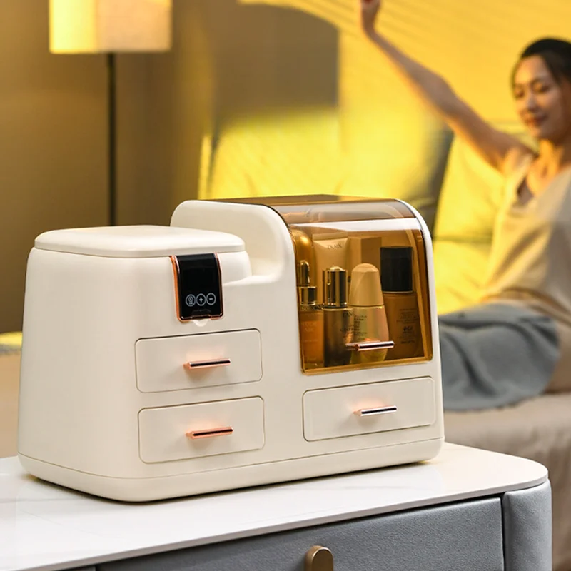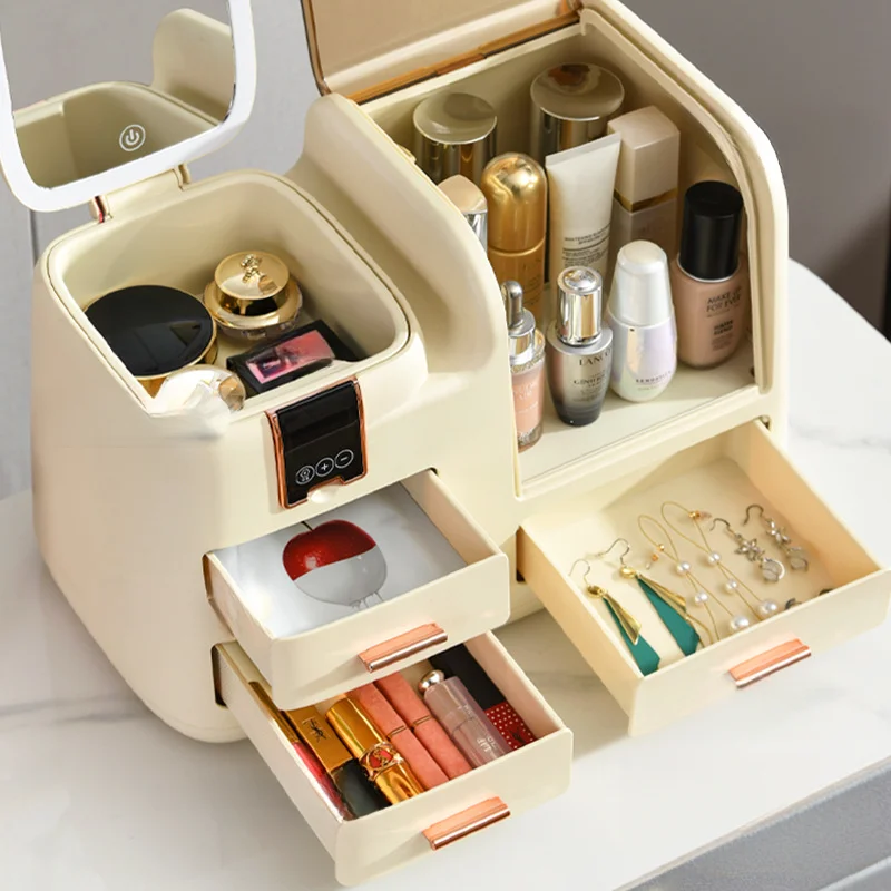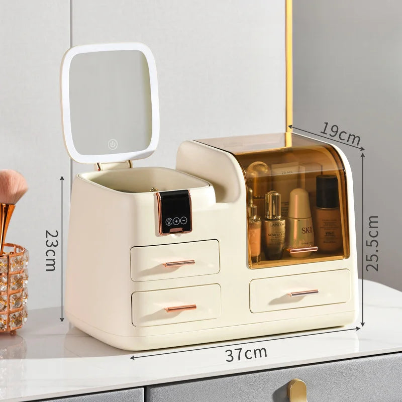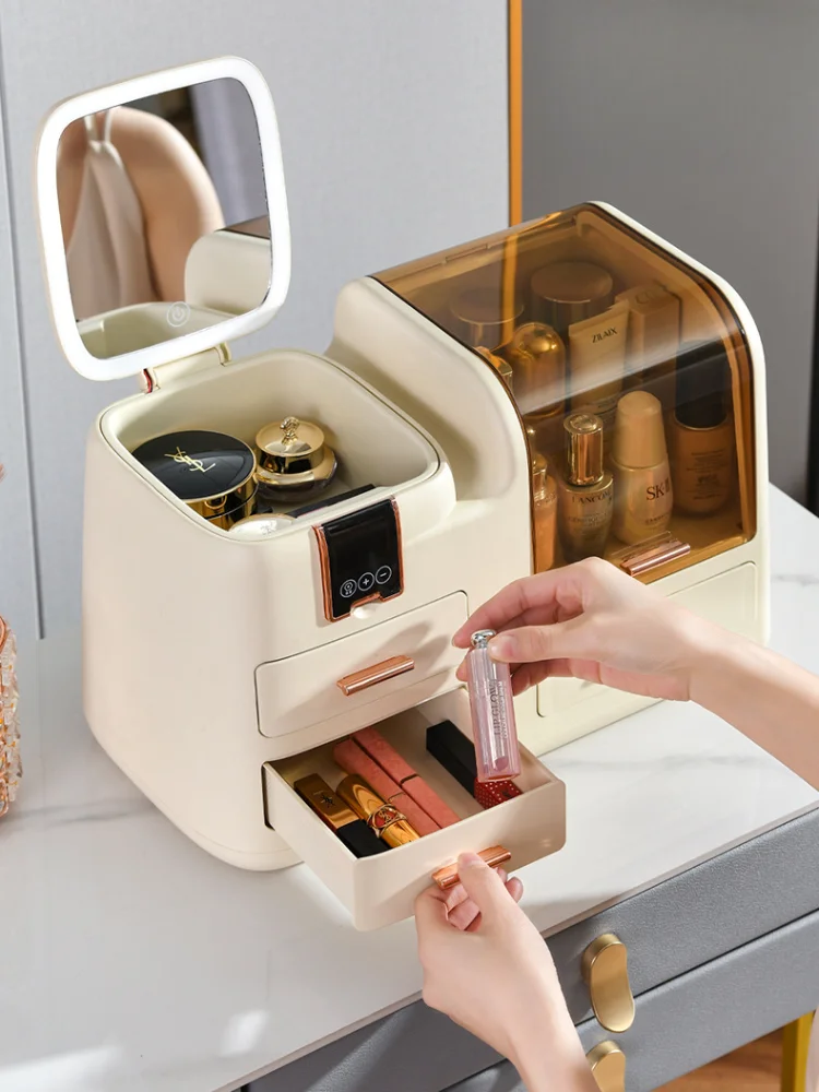 1PC Cosmetics storage box Home desktop advanced sense with mirror led light skin care products lipstick display cabinet shelf