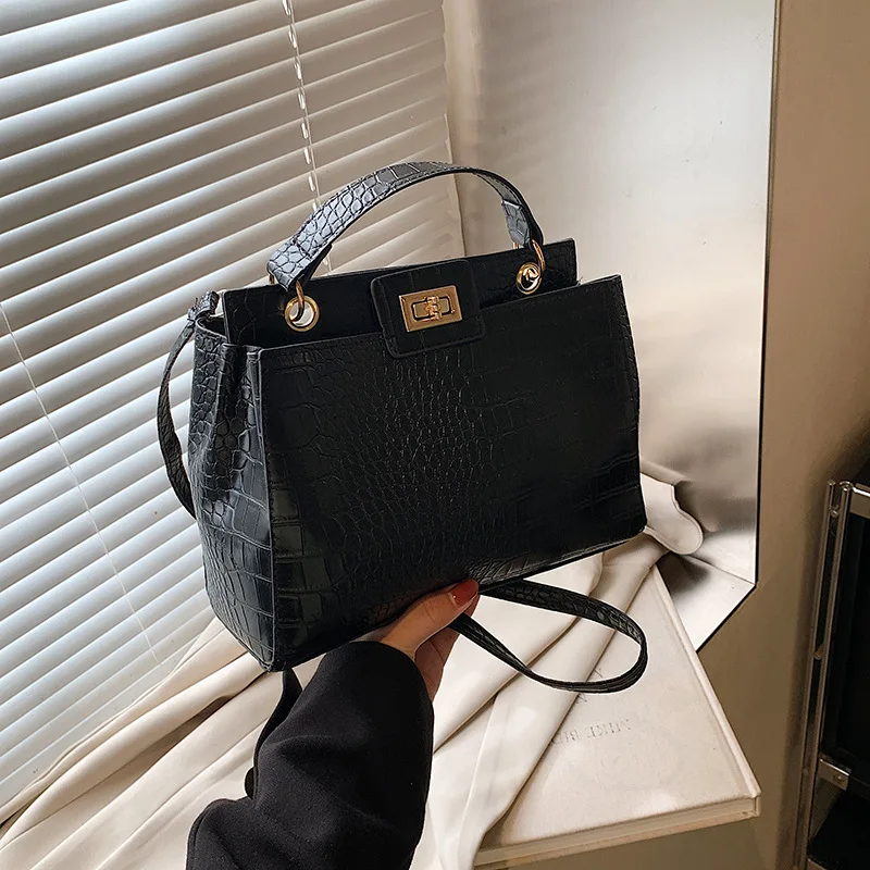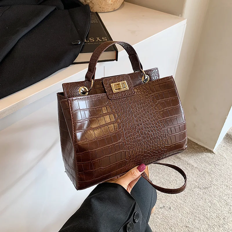 2024 New Crocodile Pattern Women's Hand-Held Shoulder Crossbody Bag Retro Style Zip Large Capacity Popular Casual Polyester