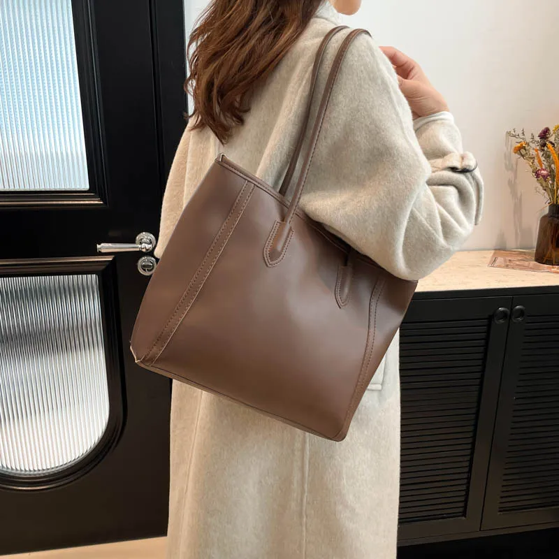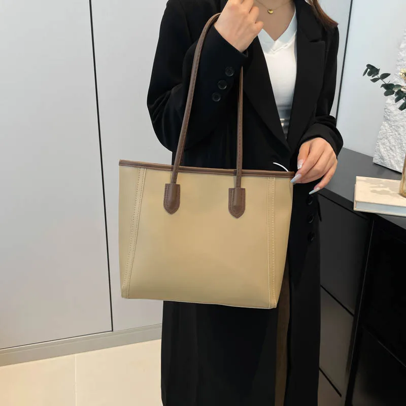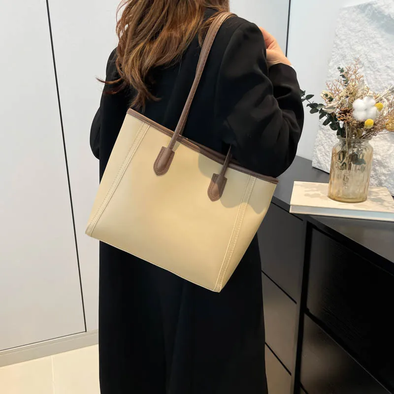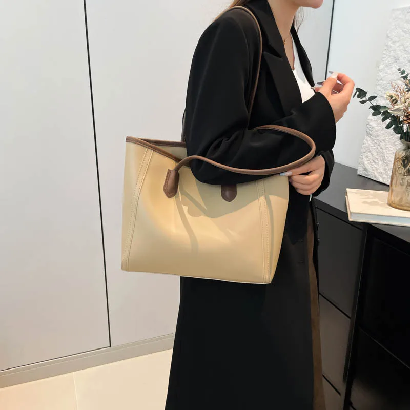 2025 Elegant Korean Style Single Shoulder Tote Bag Attractive Work Clothing Texture Handbag New Contrasting Colors Made PU