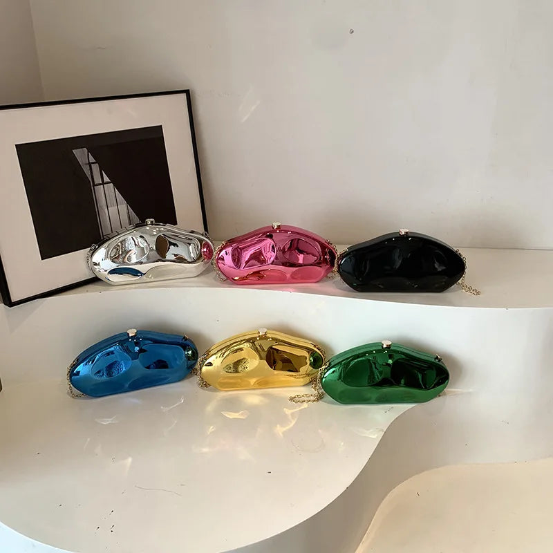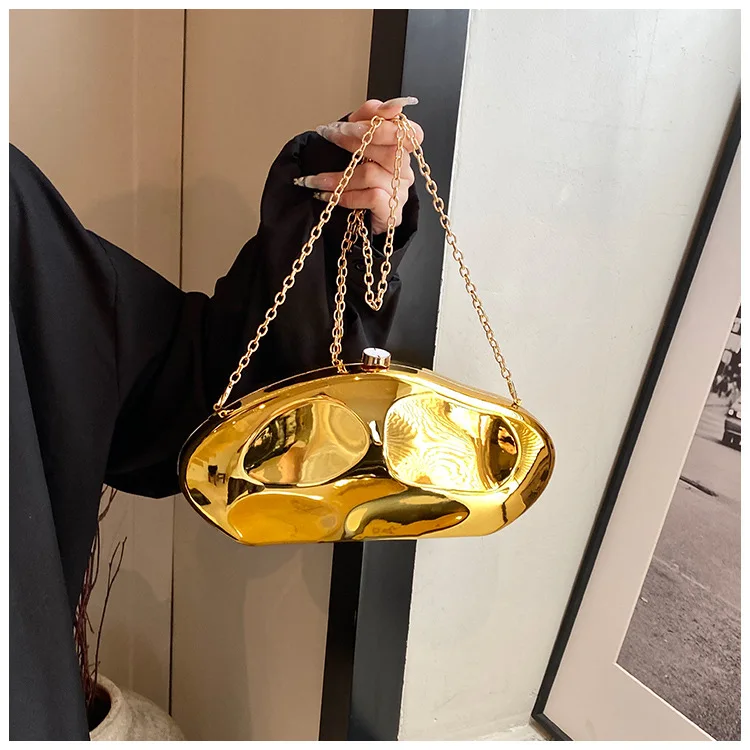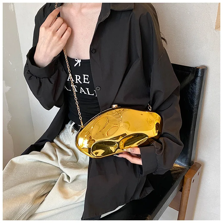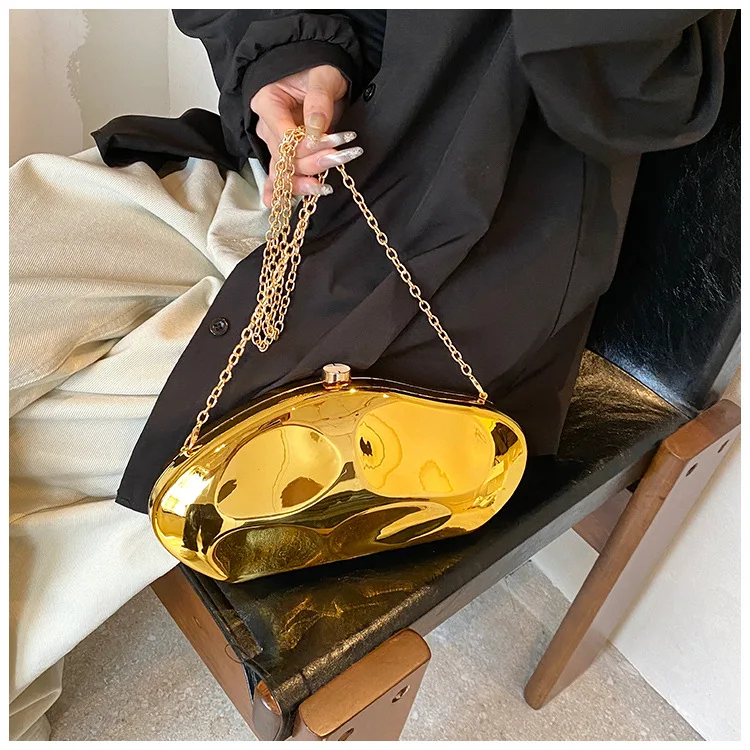 2025 Luxury Golden Silver Metallic Shell Stone Purses and Handbags Women Acrylic Party Evening Bag