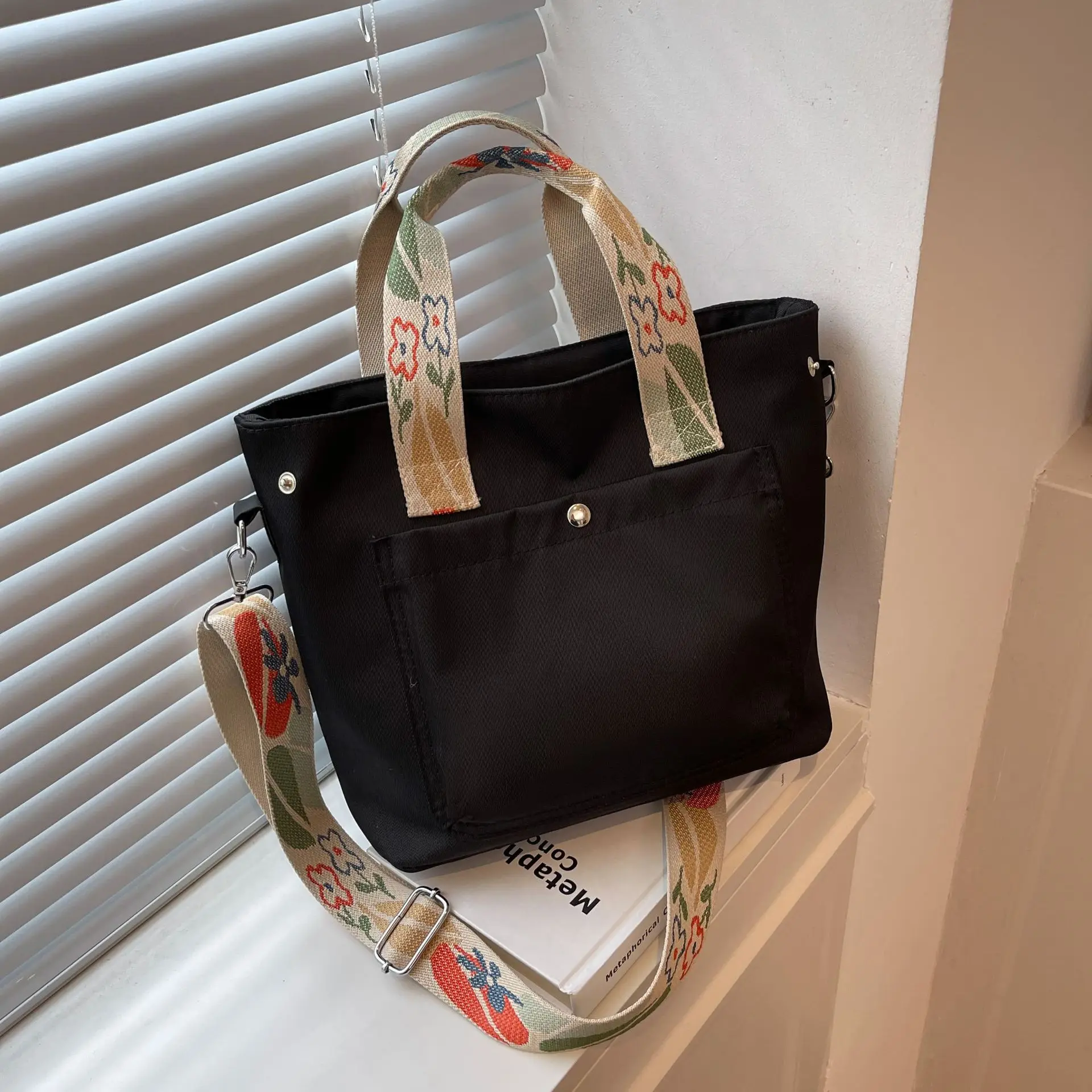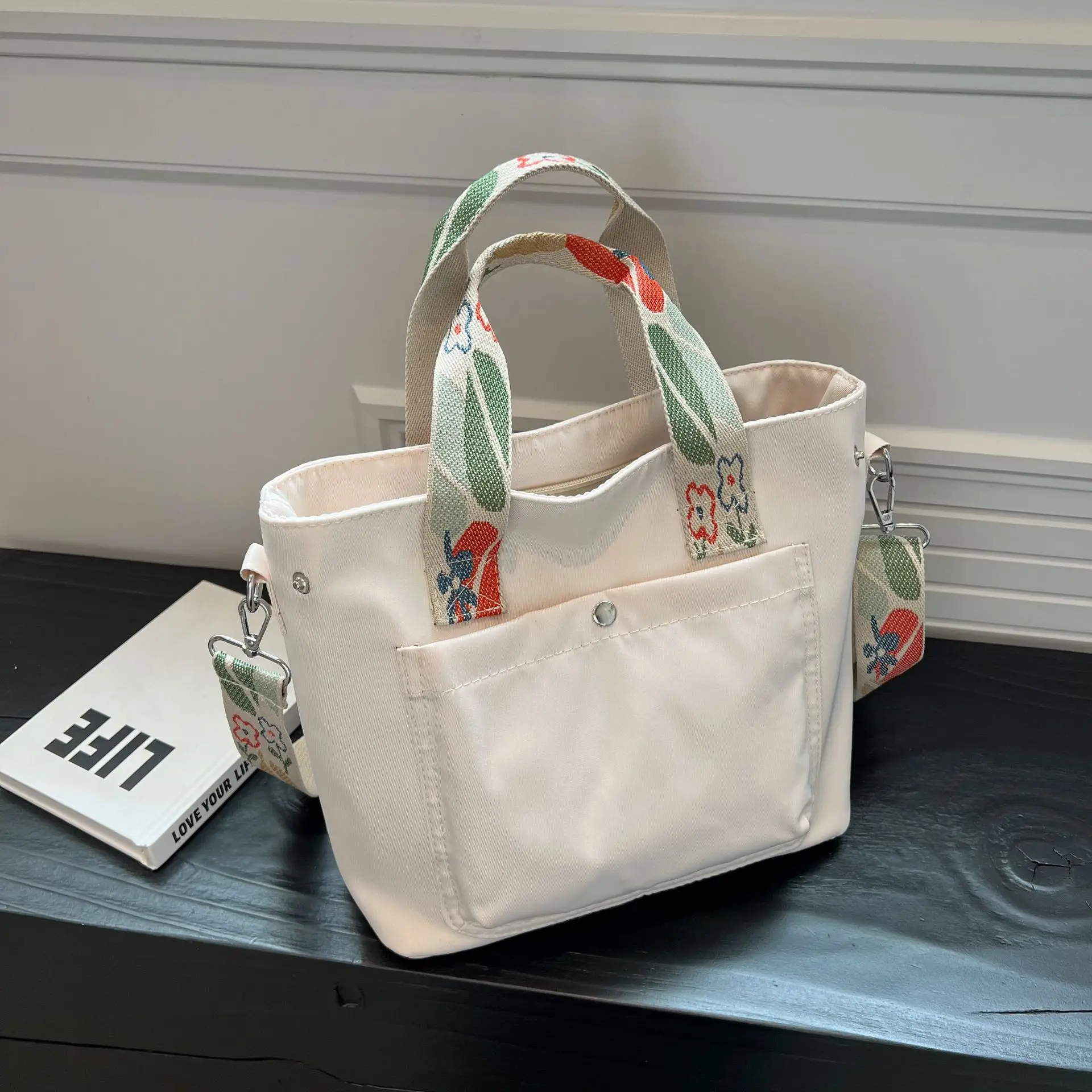 2025 New Fashion Canvas Tote Bag Wide Shoulder Strap Waterproof Large Capacity Commuting Student Class Mommy Autumn PU Polyester