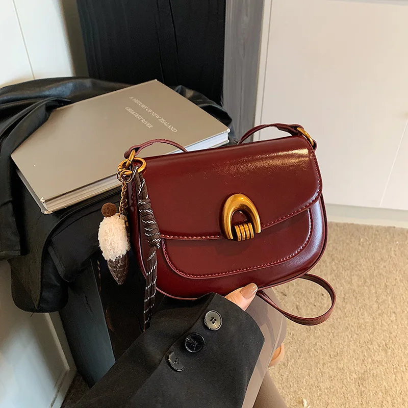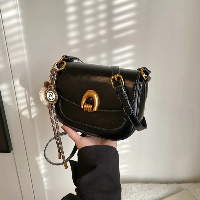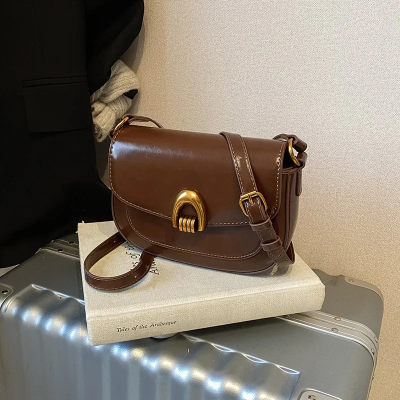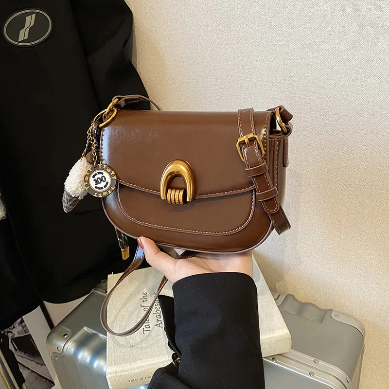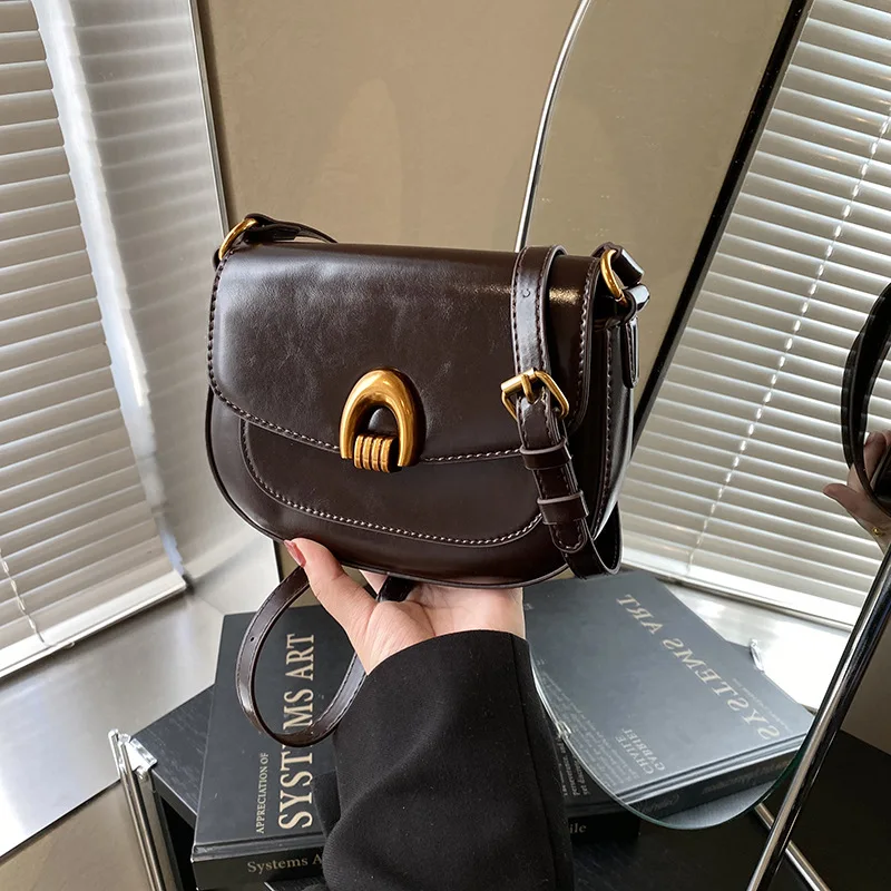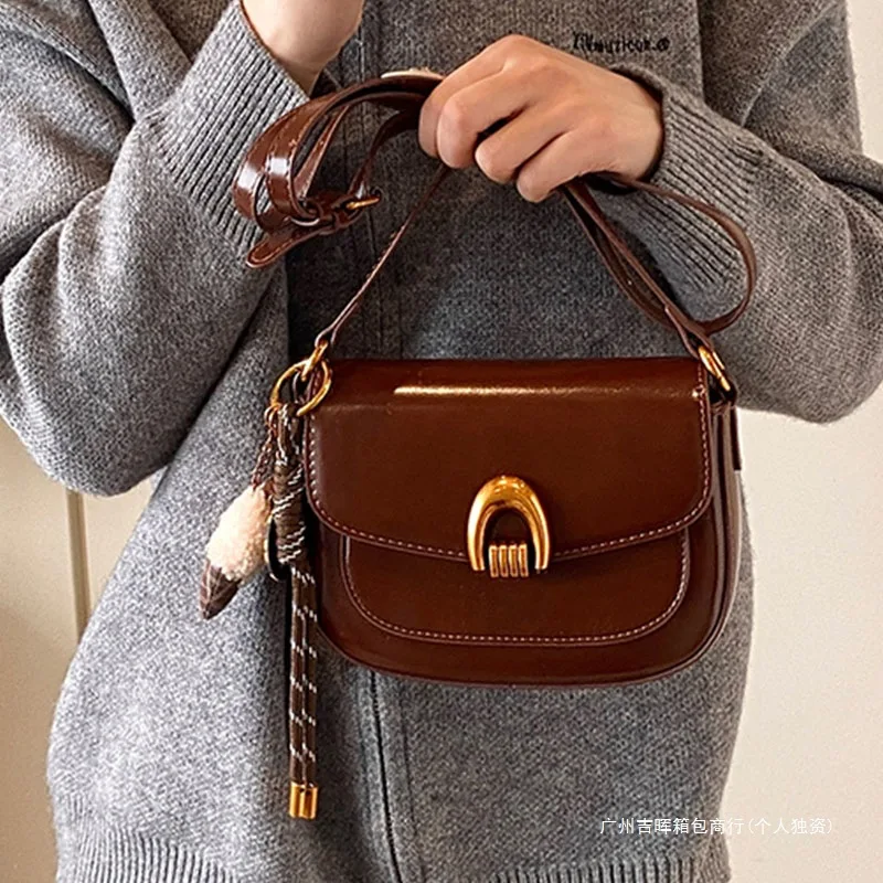 2025 New Fashion Cross Bags for Women Senior Female Saddle Bag Zip Closure PU Lining Leather Texture Single Shoulder Bag