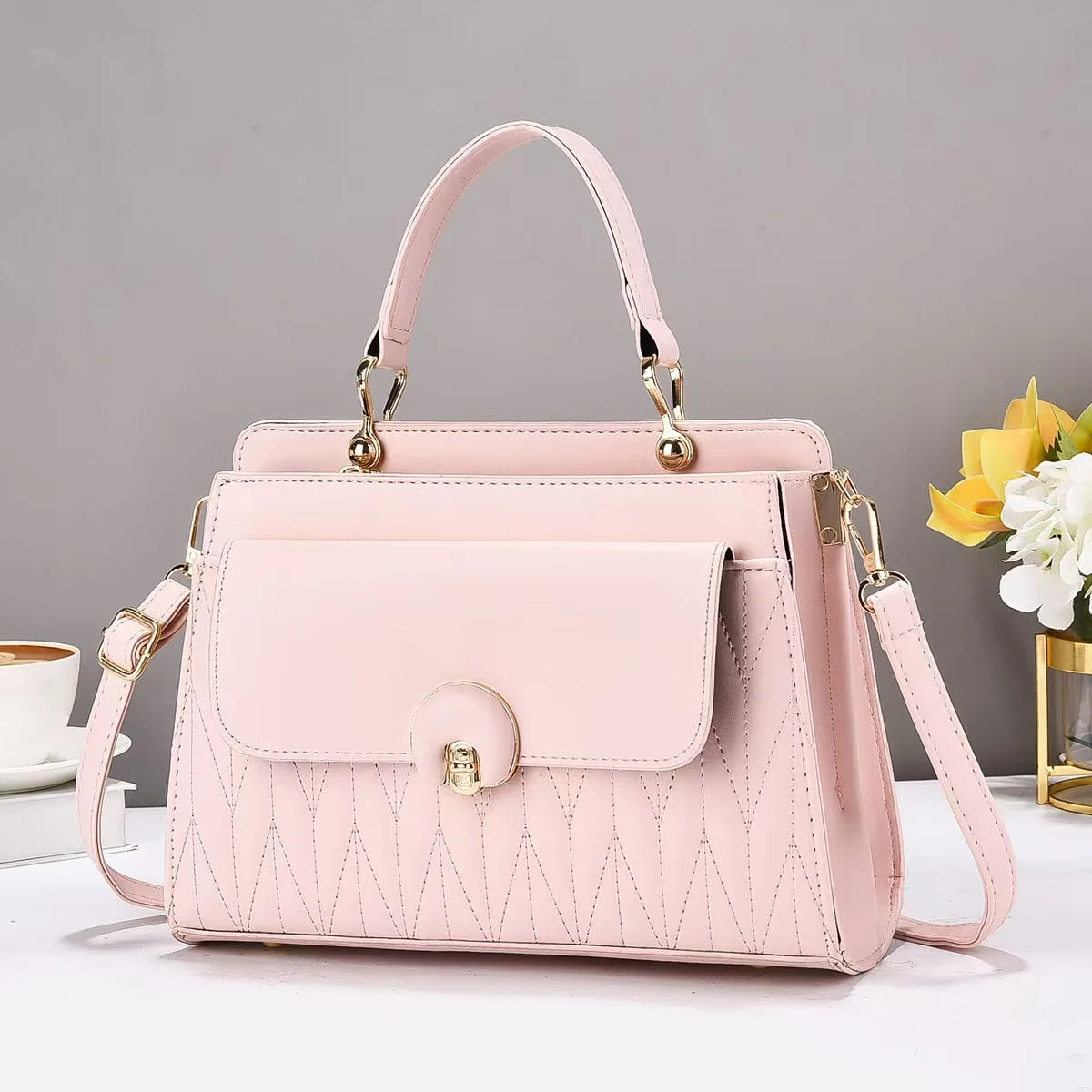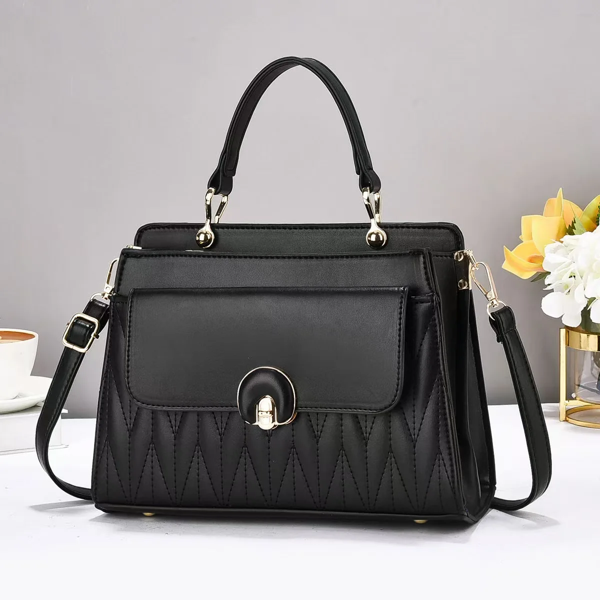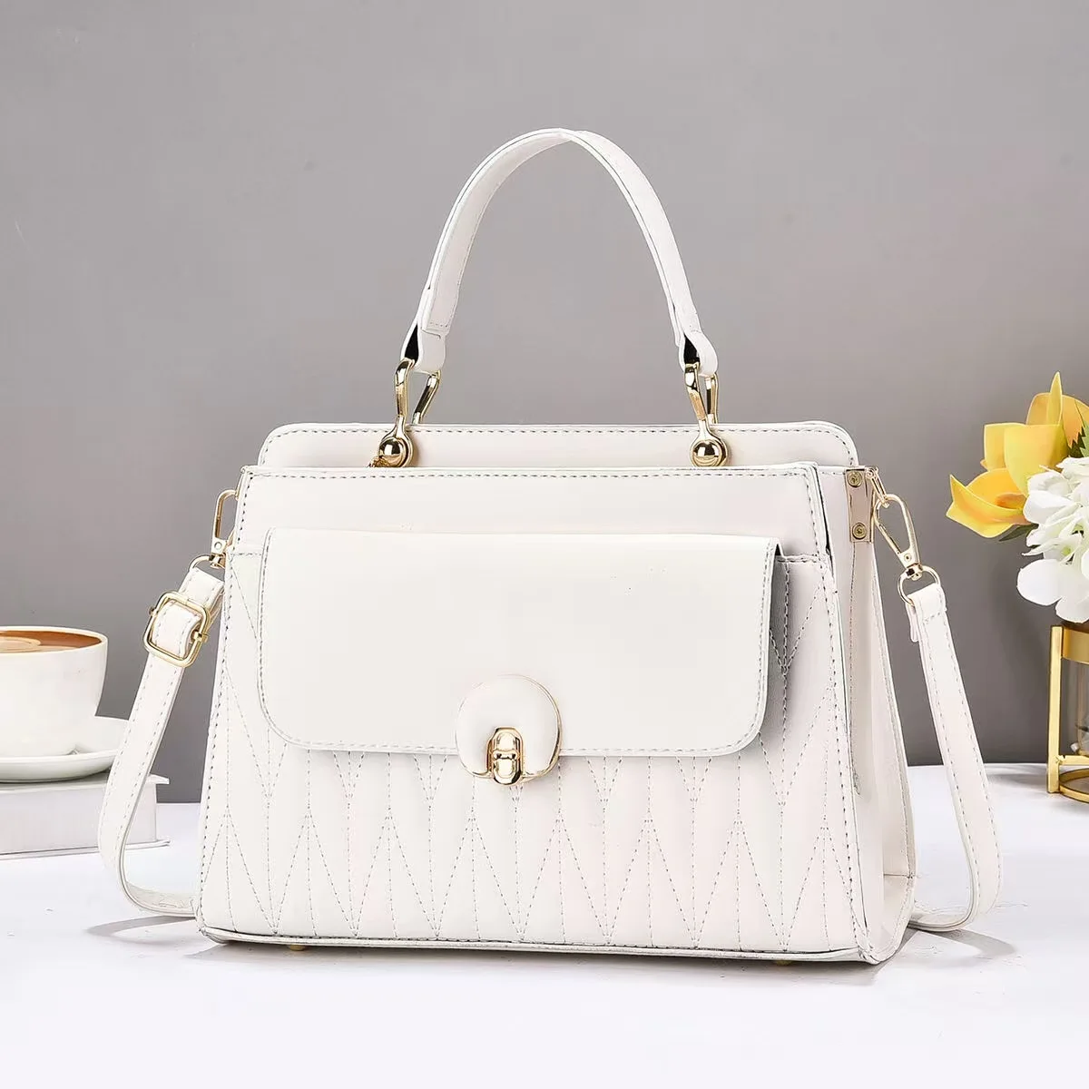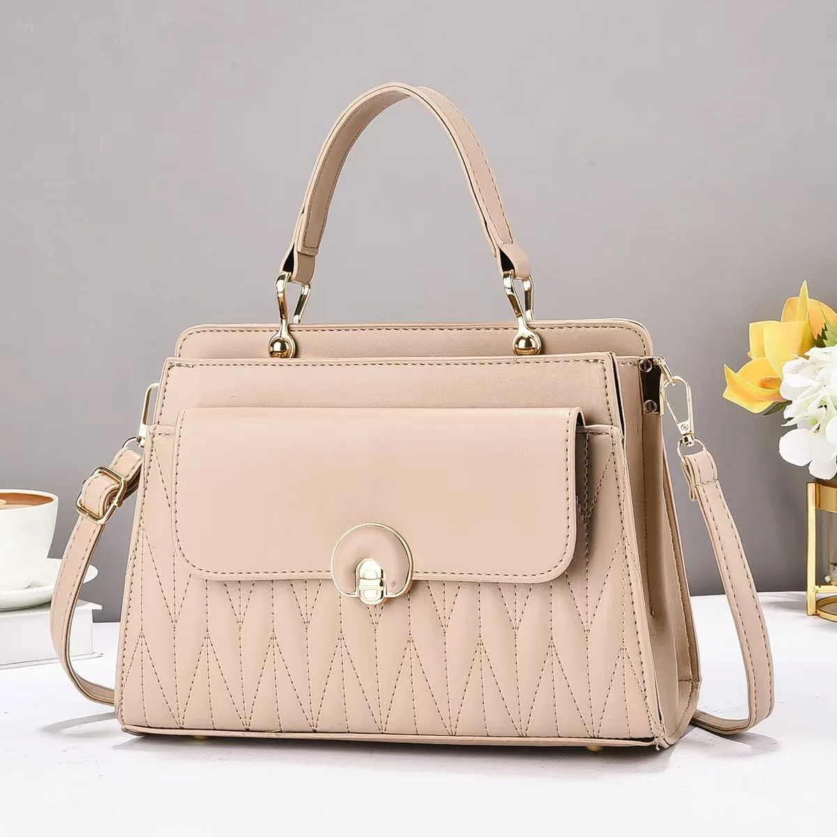 2025 New Solid Temperament Handbag High-end and Large Capacity Single Shoulder Crossbody Bag PU square Fashion Bags for Women
