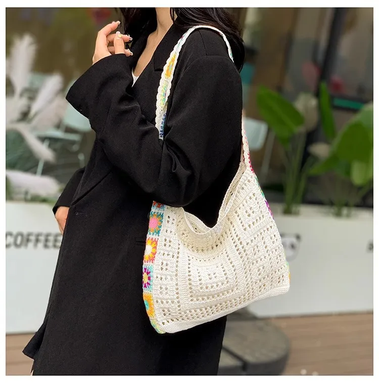 2025 New Summer Beach Tote Open Bags square Fashion Durable Party Shopping Date Hippie Bags Polyester Branded Designer Bag