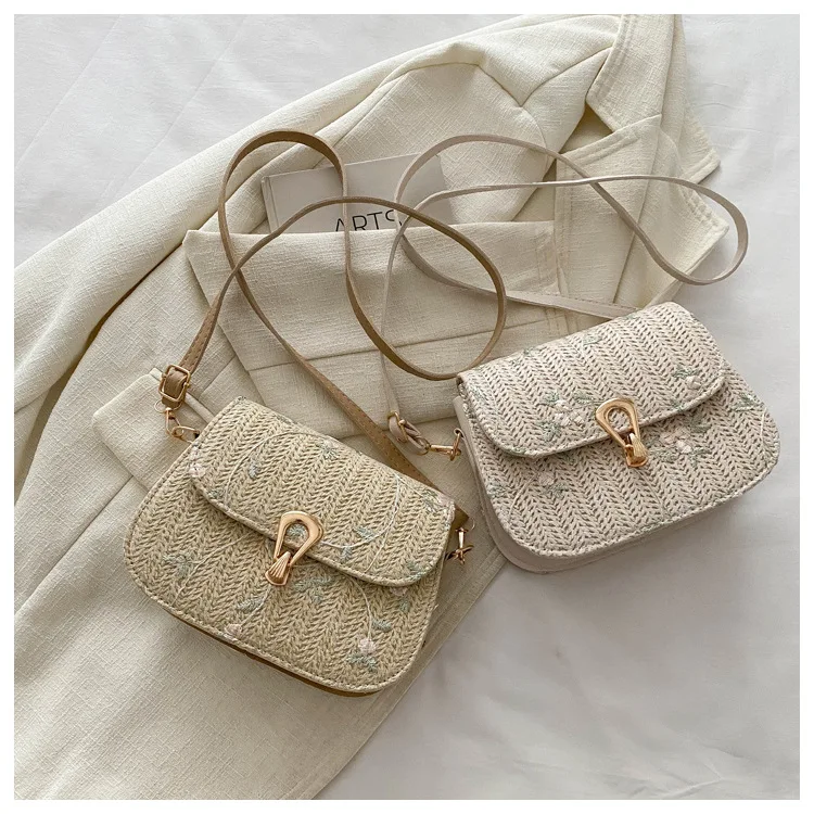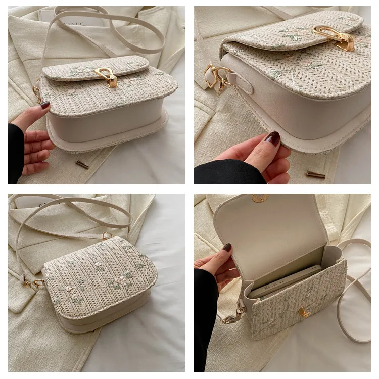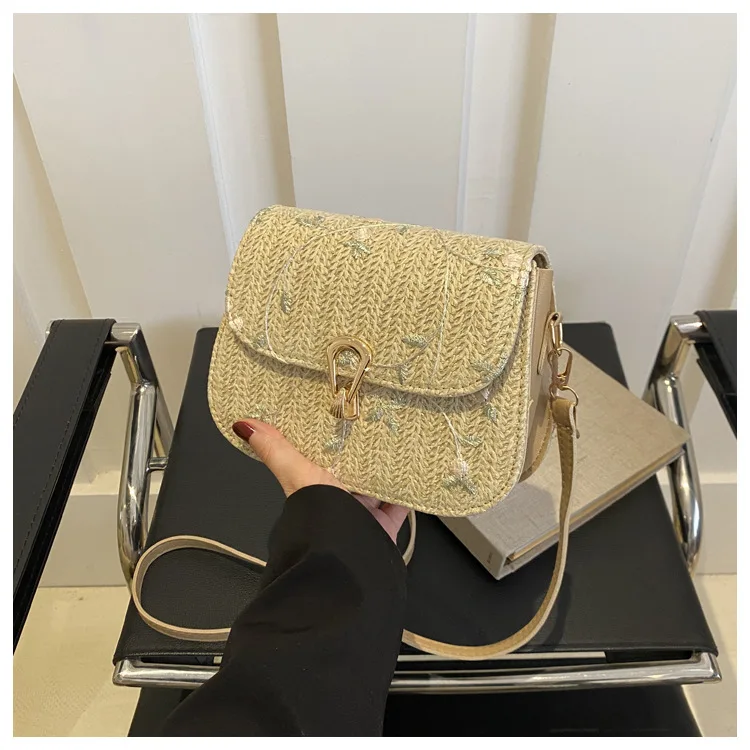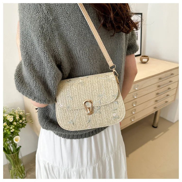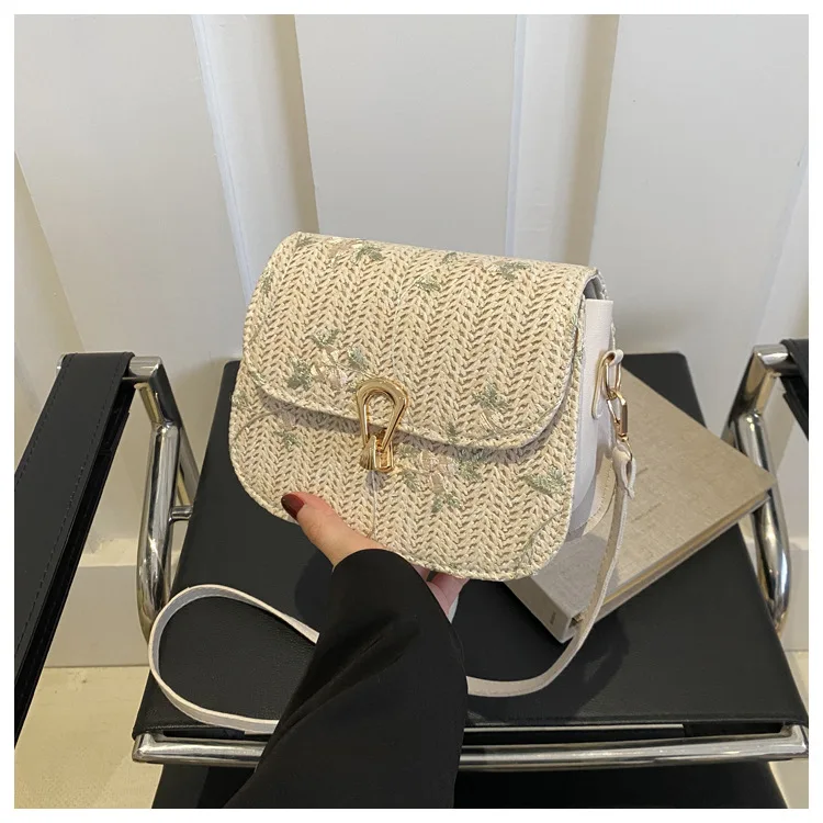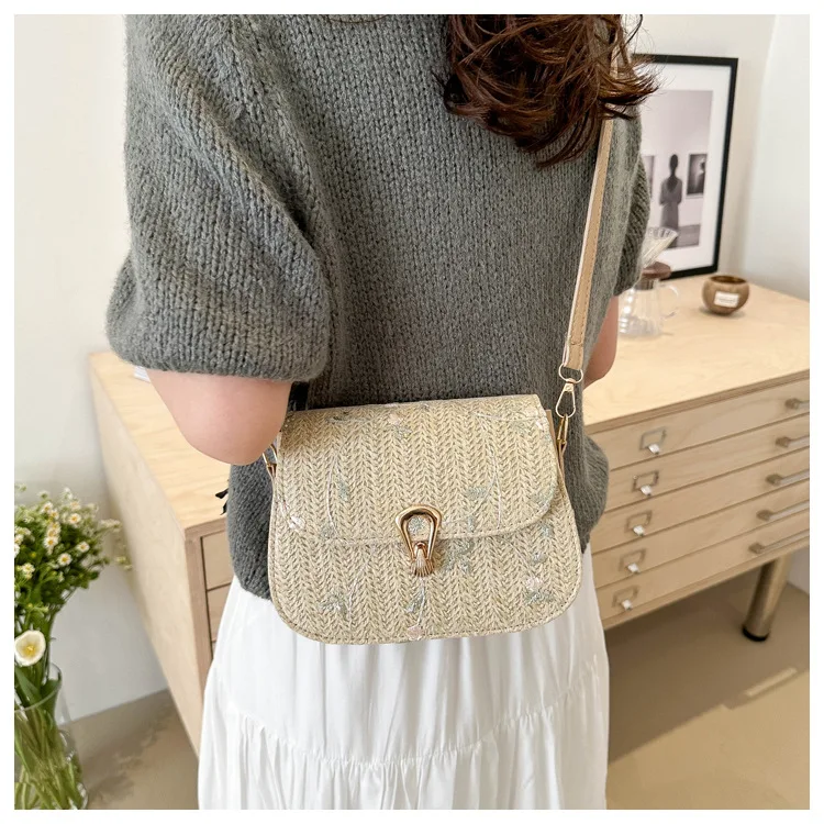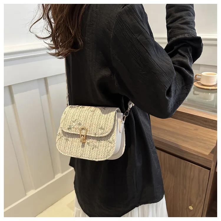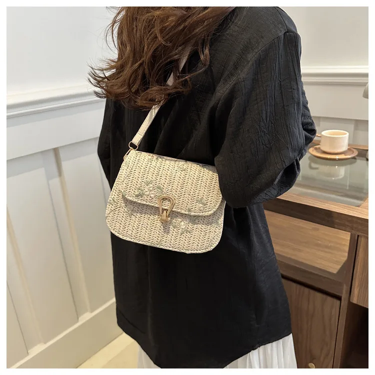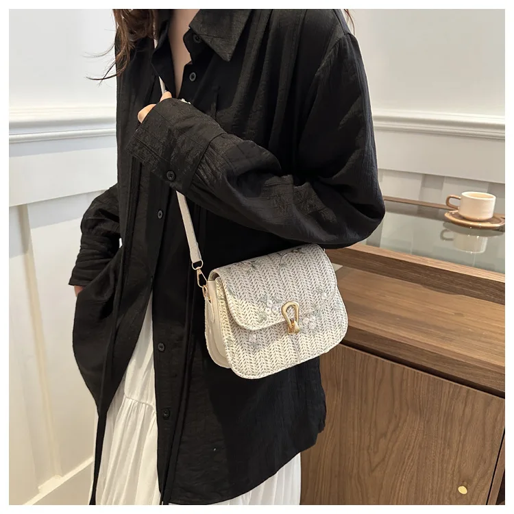 2025 New Trendy Casual Women's Half-Moon Lace Flower Woven Shoulder Bag Polyester Clutch Bag Stylish Cross-Border Saddle Bag