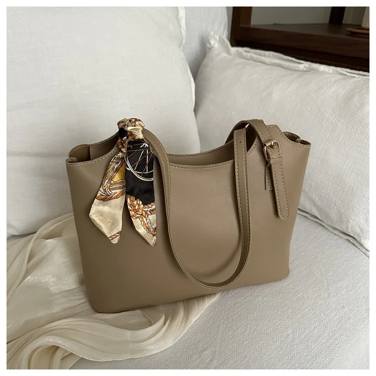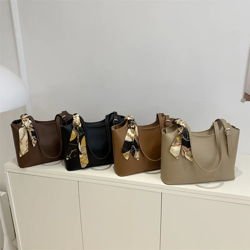 2025 Spring New High-End Retro Style Ins Tote Bag Zipper Cross Polyester Handbag with Silk Scarf Versatile Handbags for Women