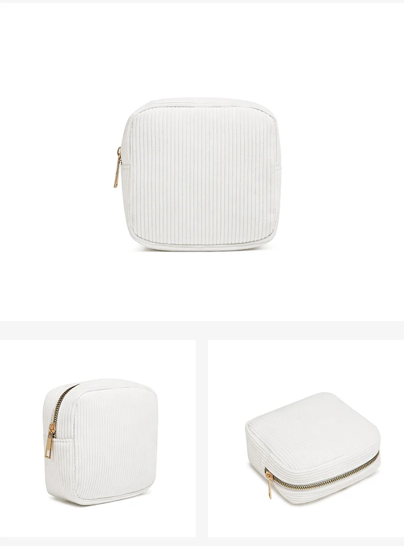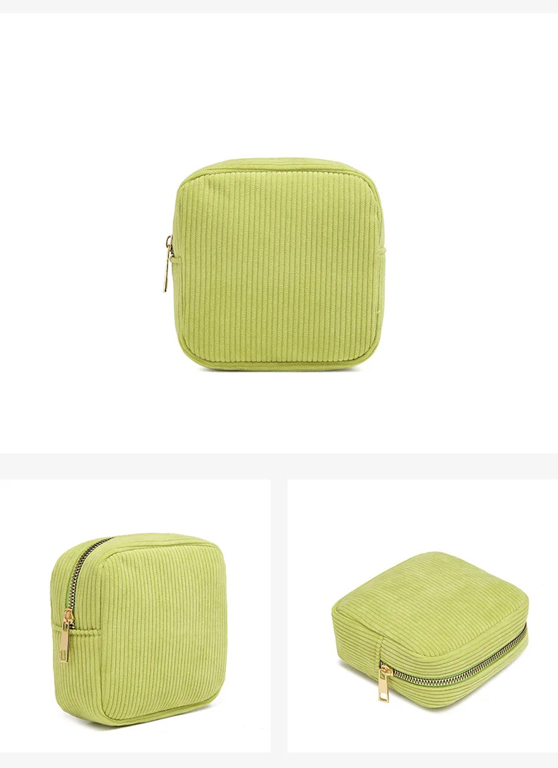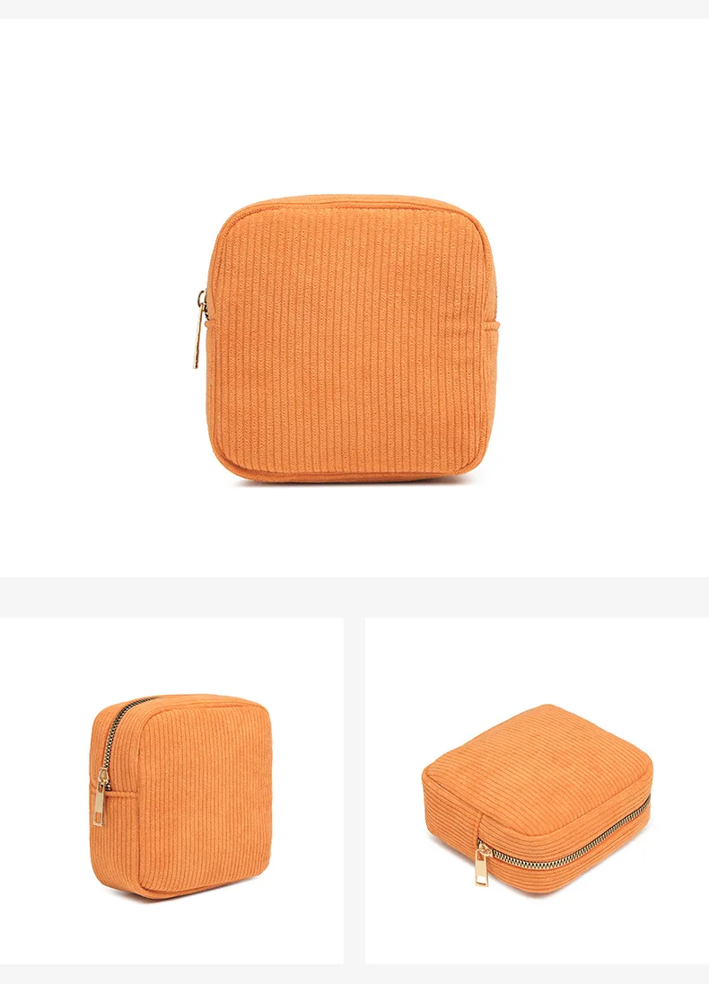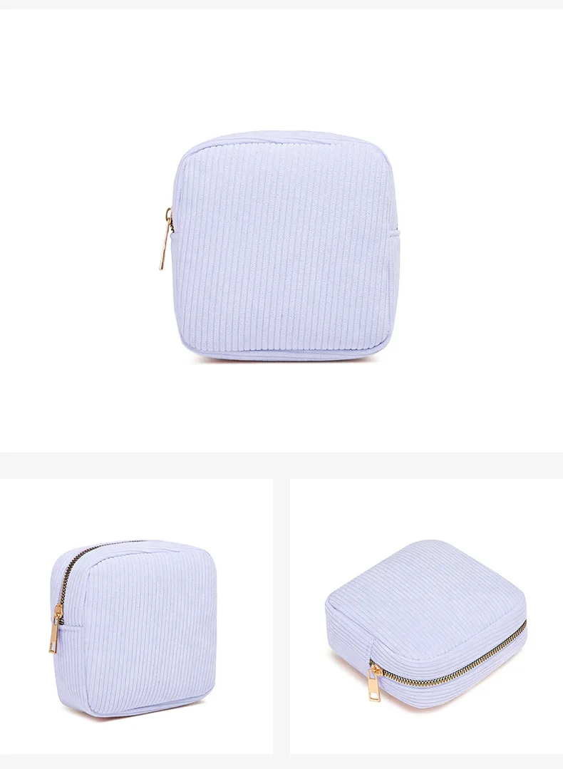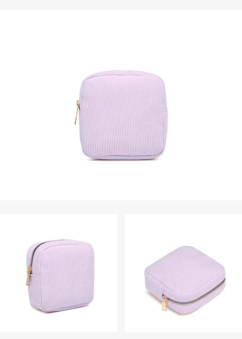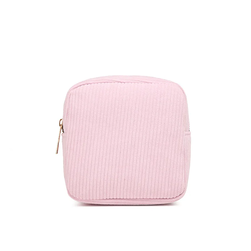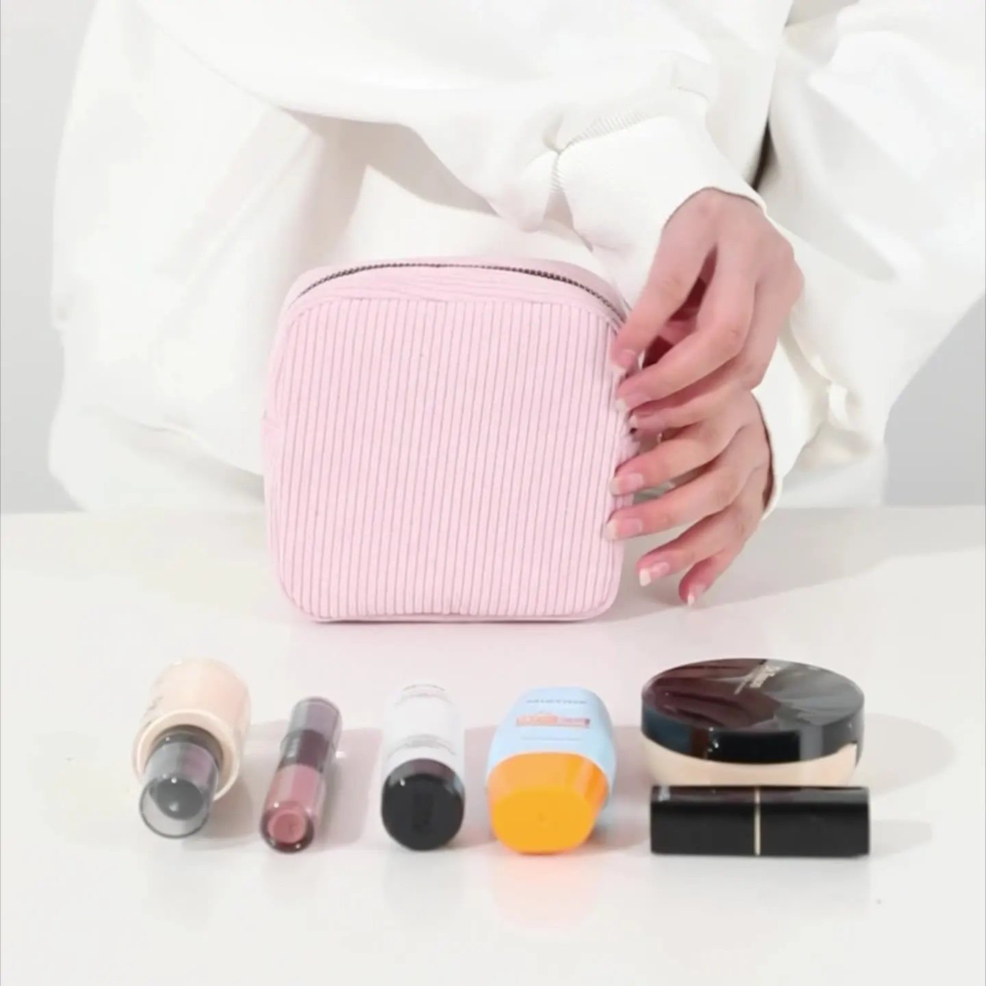 2025 Wholesale Custom Square Striped Corduroy Makeup Bag Luxury Bags Women Corduroy Striped Lightweight Cosmetic Bag