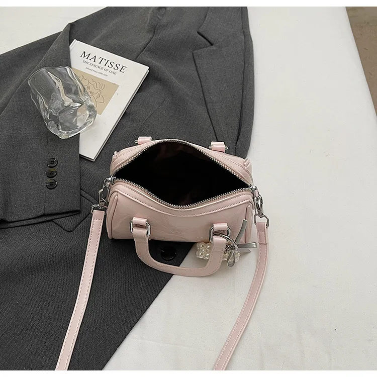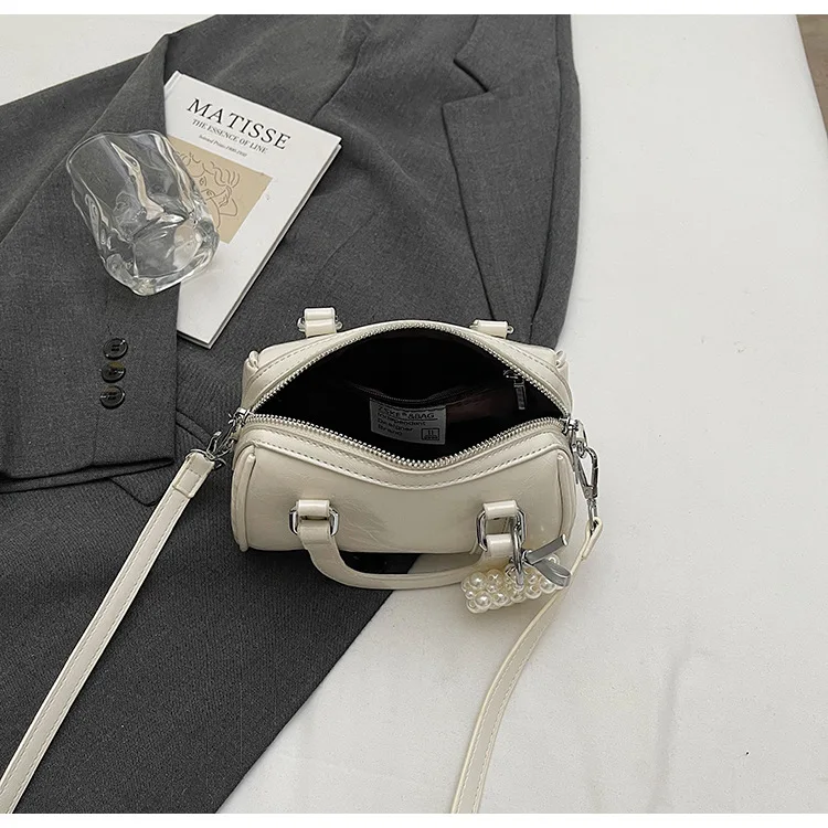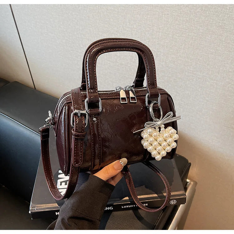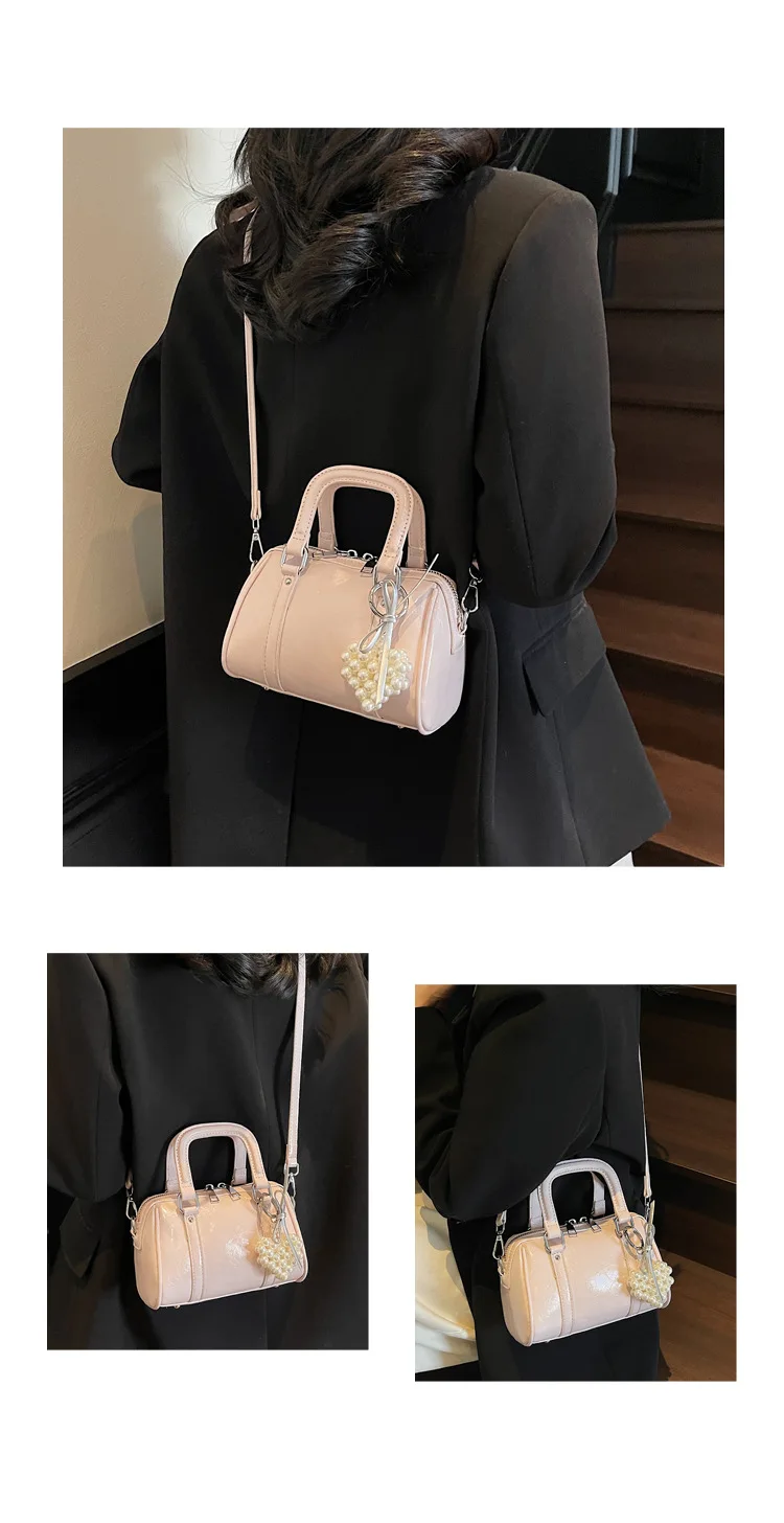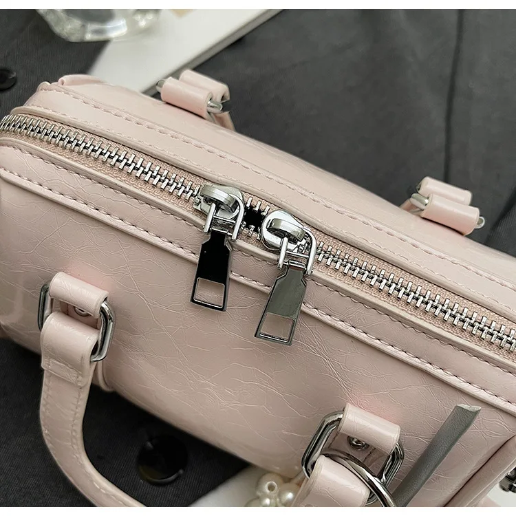 2025 Women's Luxury Solid Color Pillow PU Leather Pearl Zipper Closure Crossbody Handbag Waterproof Fashionable Shoulder Bag