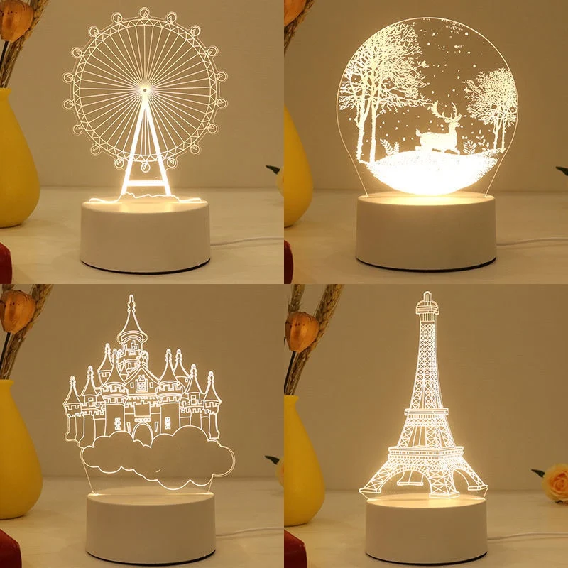 3D Eiffel Tower Ferris wheel castle Home Decoration USB Night light Girlfriend Birthday Gift Valentine's Day Christmas Ornament