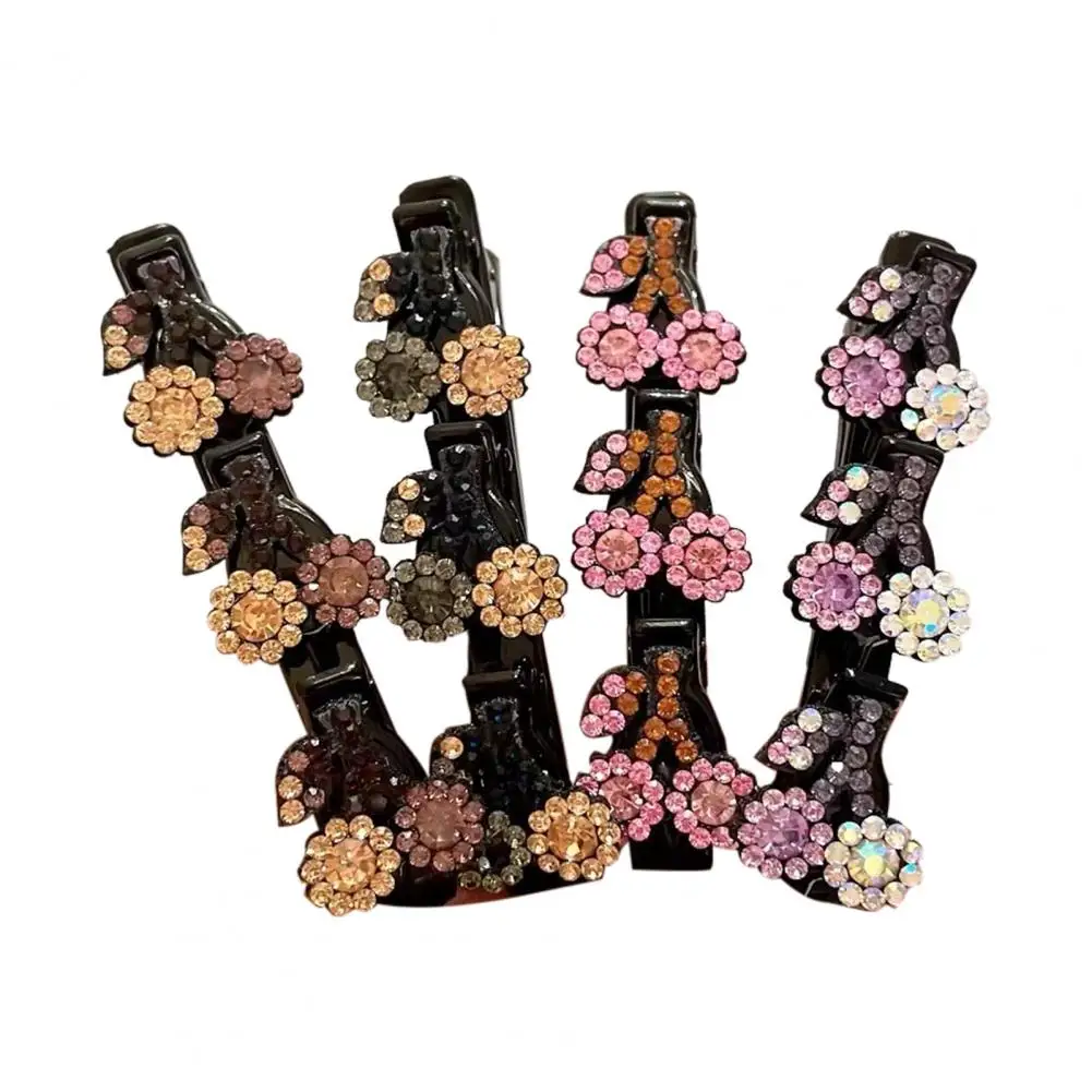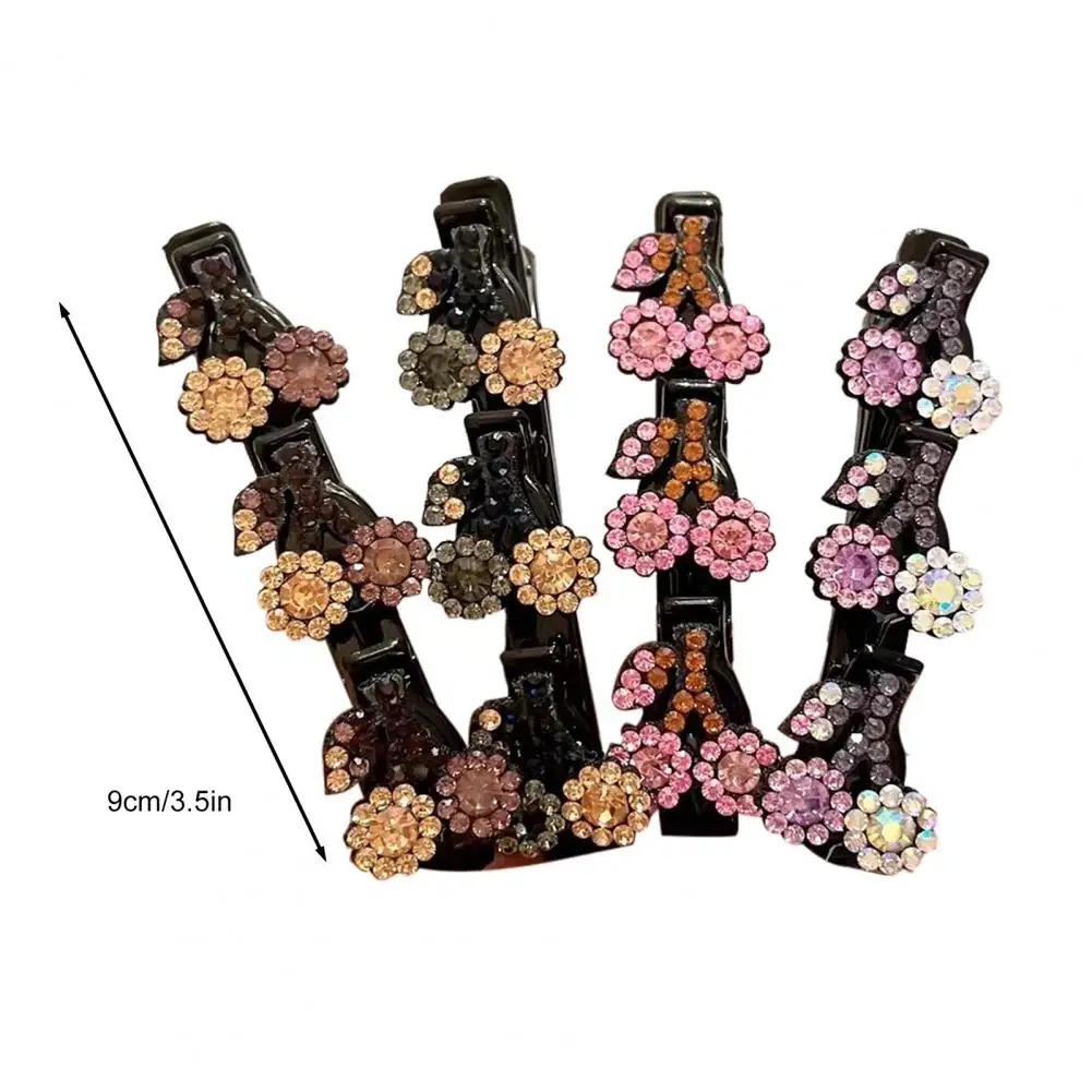 4Pcs Girl Hairpins Shining Cherry Decor Double Layer Hair Clips Lady Braid Side Bang Hair Pins Hair Accessories