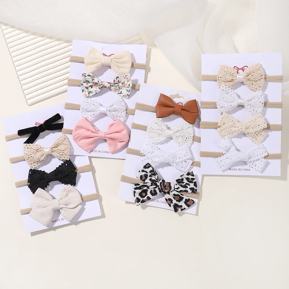 4Pcs/Set Flower Bows Headband Baby Hairband for Girl Children Elastic Hair Bands Soft Toddler Newborn Cute Hair Accessories Gift