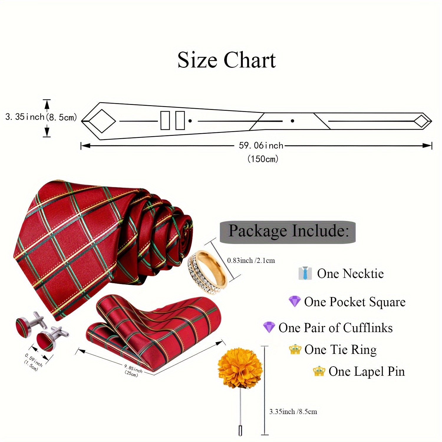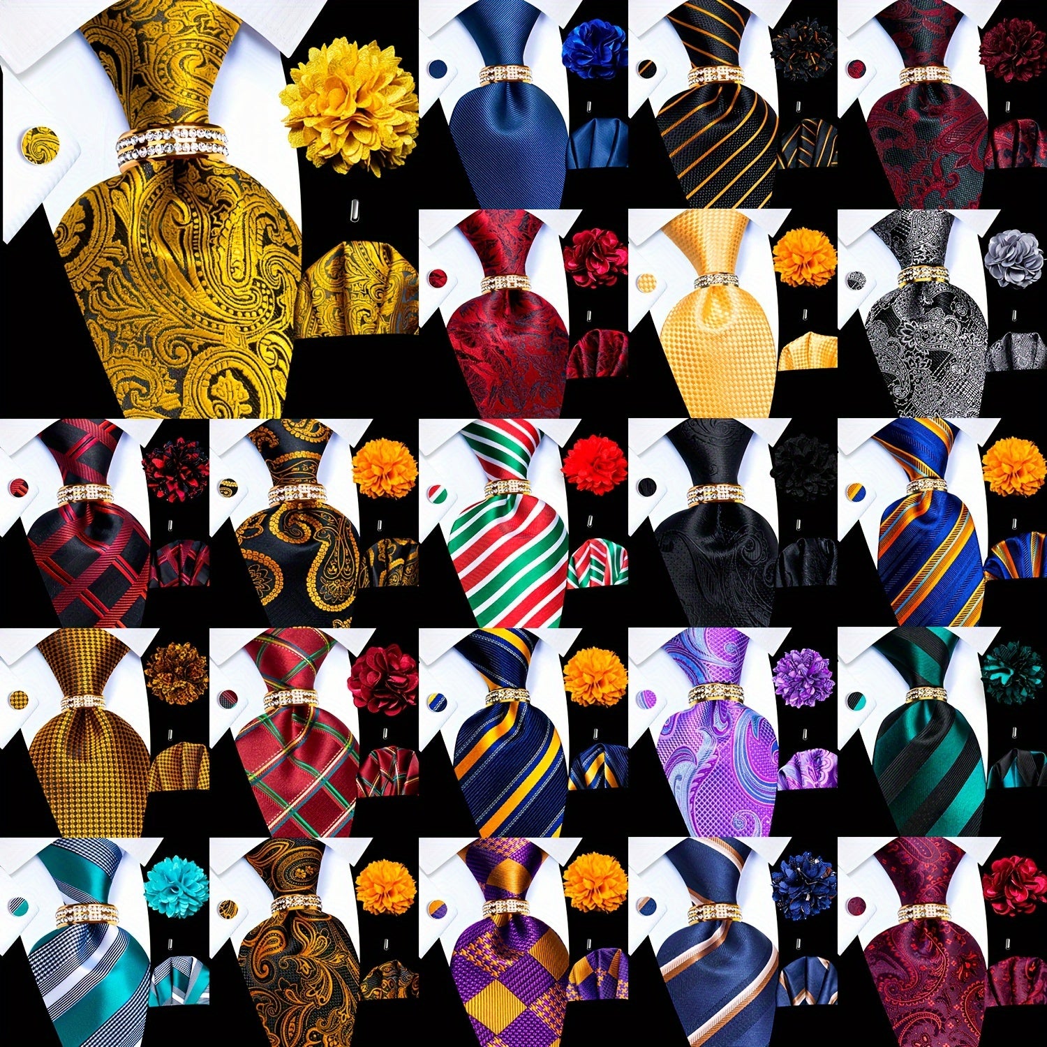 5PCS Men's Luxury Tie Set with Pocket Square, Cufflinks, Drilled Tie Ring, and Lapel Pin