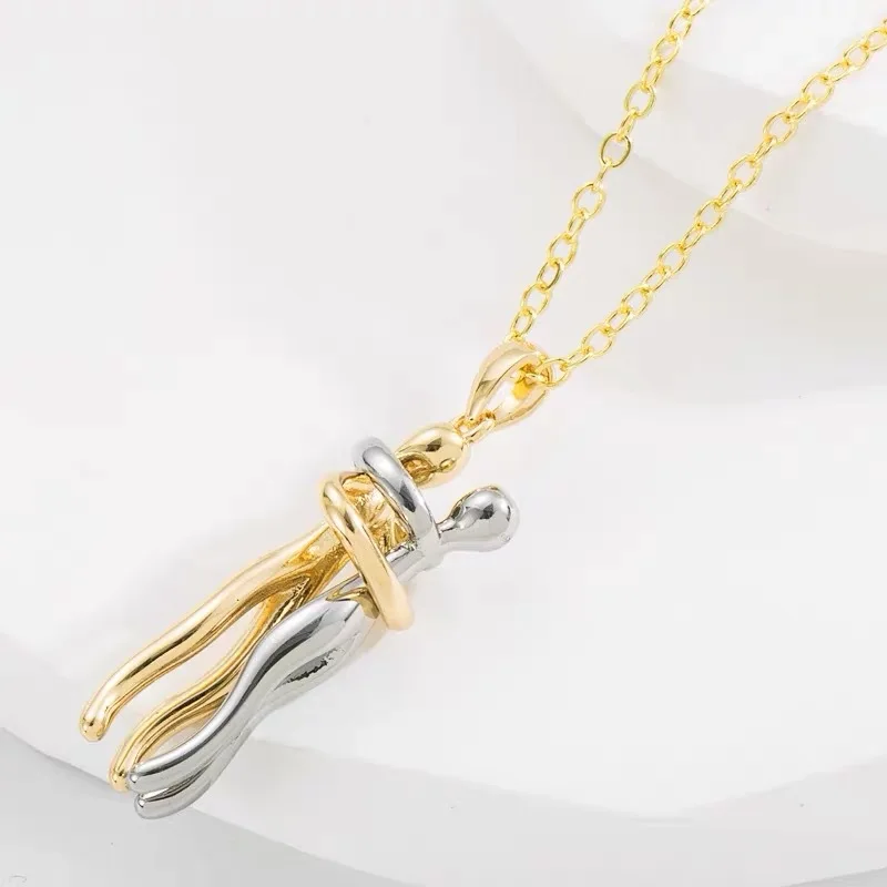 ANENJERY 316L Stainless Steel Couple Hug Pendant Necklace for Lover Anniversary Valentine's Day Wedding Classic Jewelry Gifts