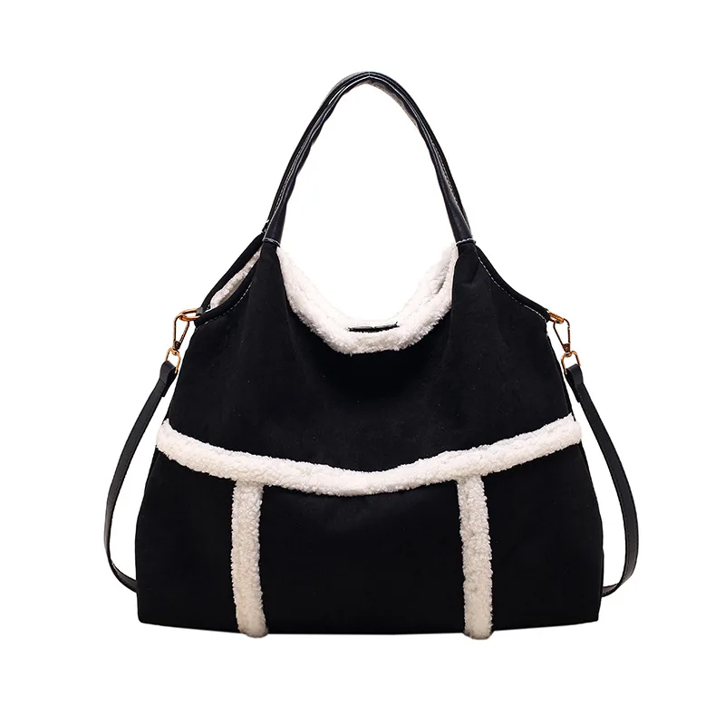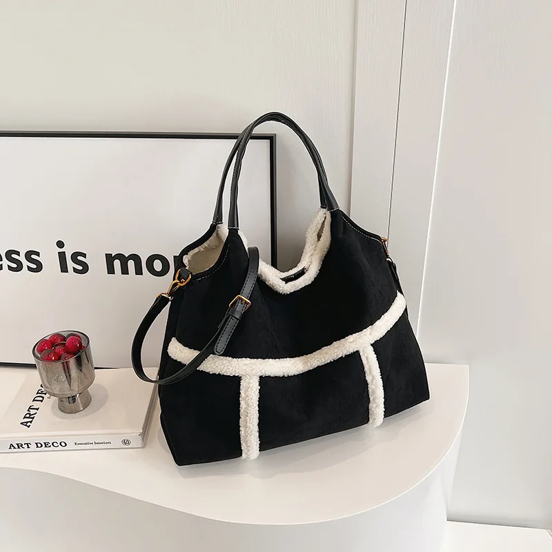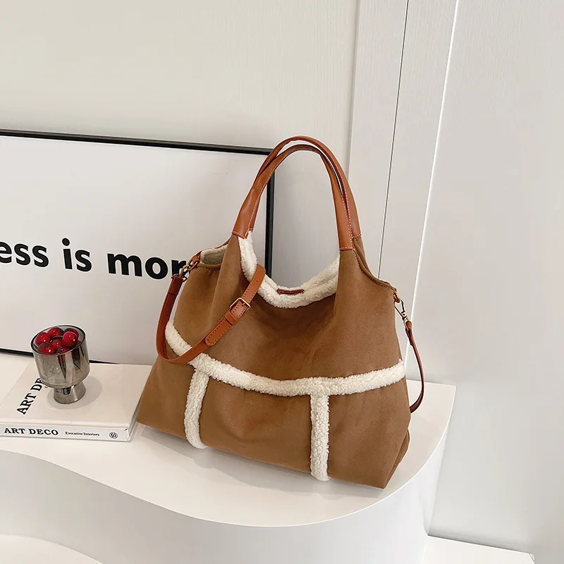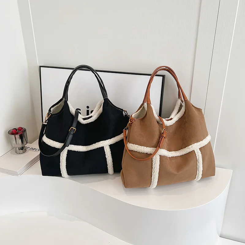 Bag 2024 Fall and Winter New Suede Women's Handbag Large Capacity Splicing Tote Shoulder Bag Retro Plush Two-Piece Crossbody Bag