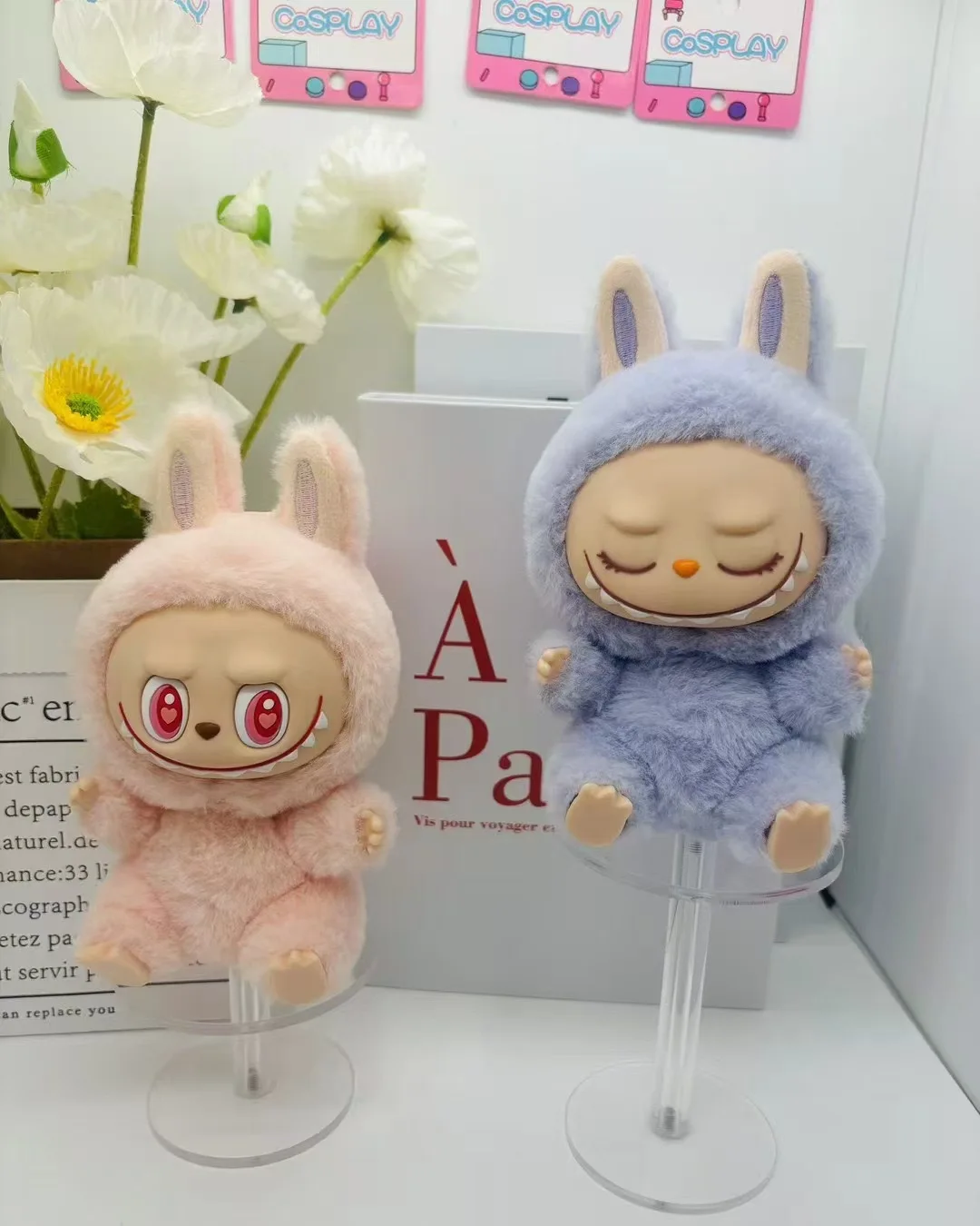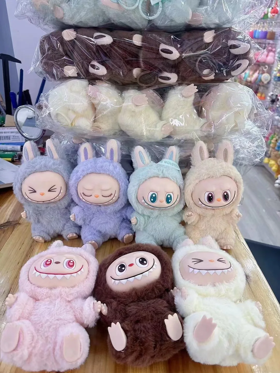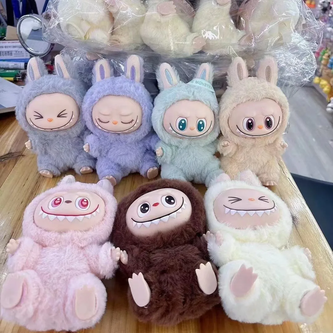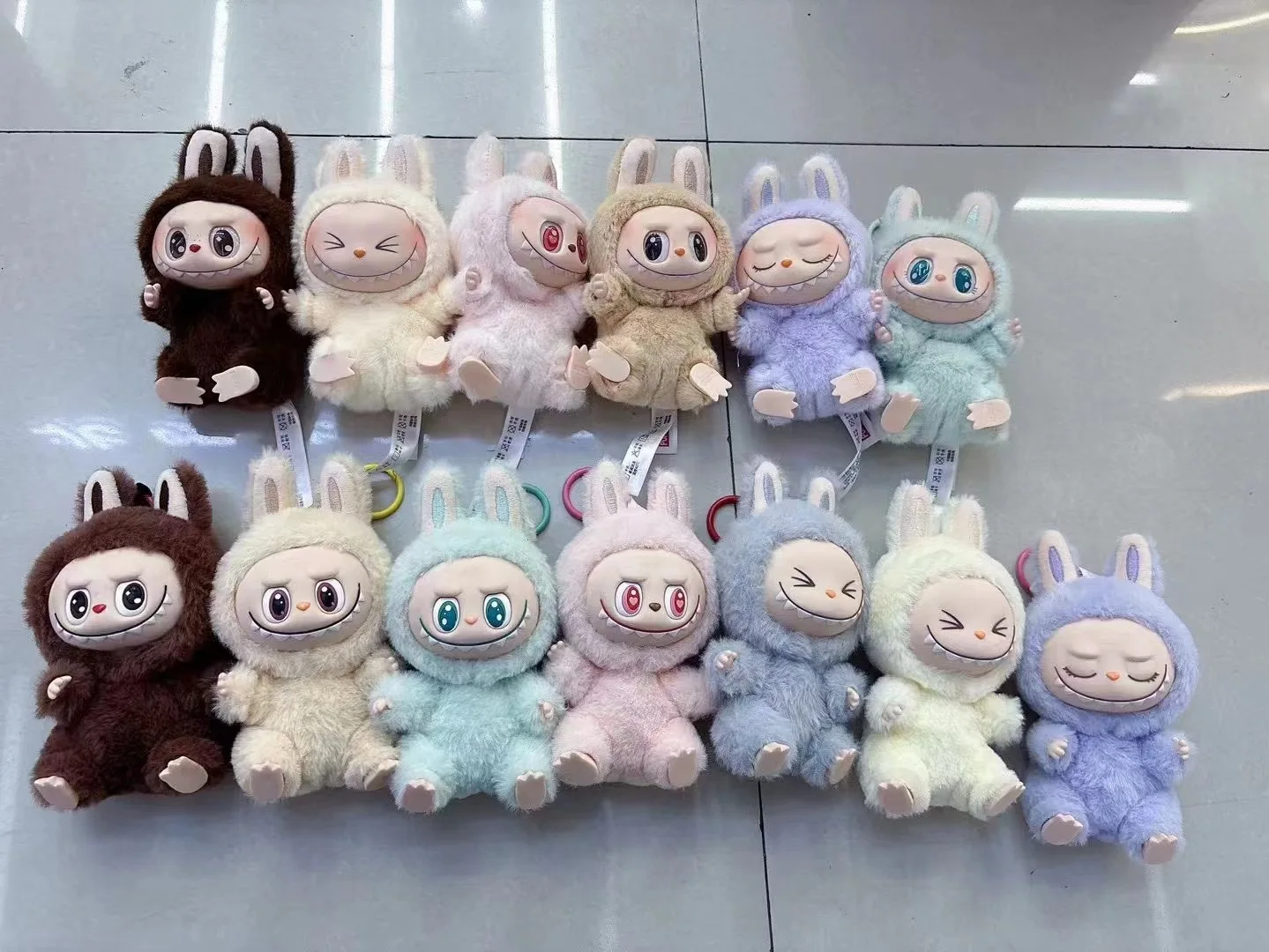 Cartoon cute labubu second generation doll sits on the rubber party plush macaron cute doll plush labubu doll keychain toy gifts