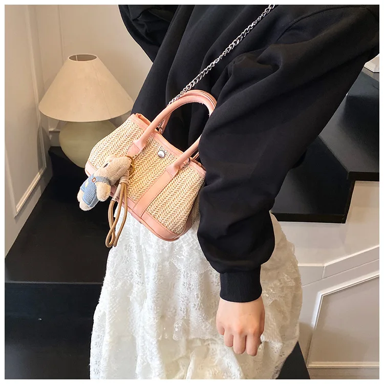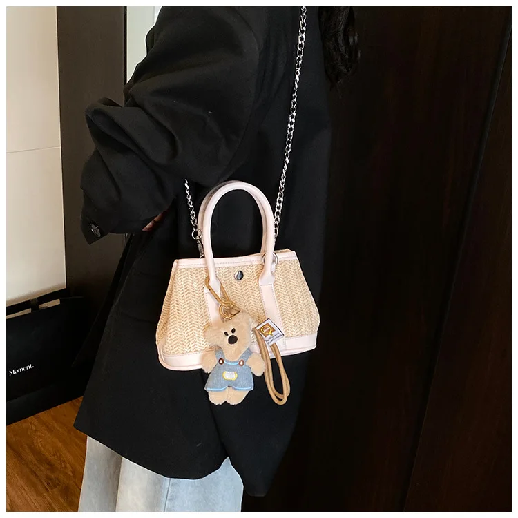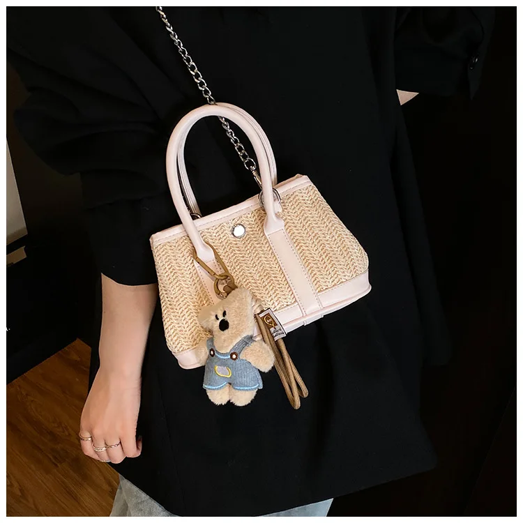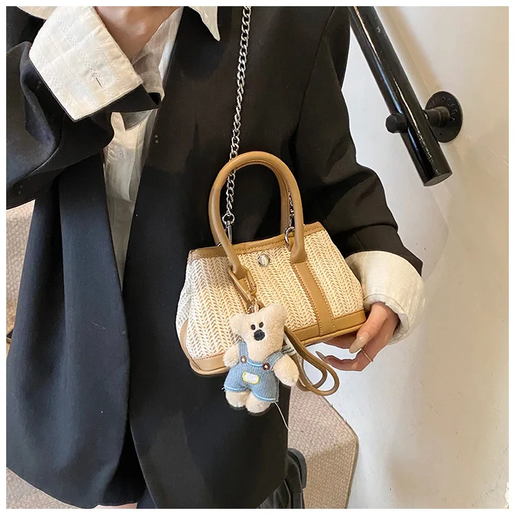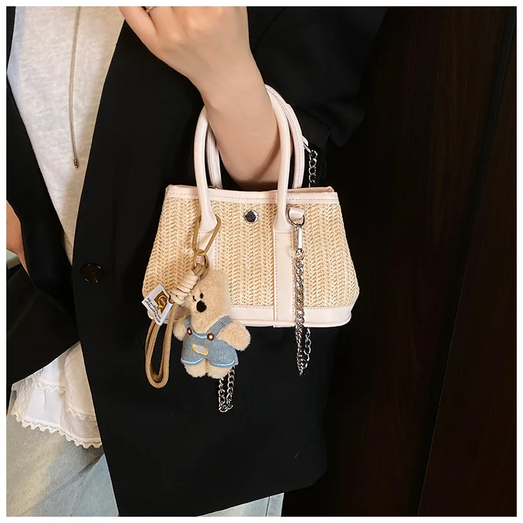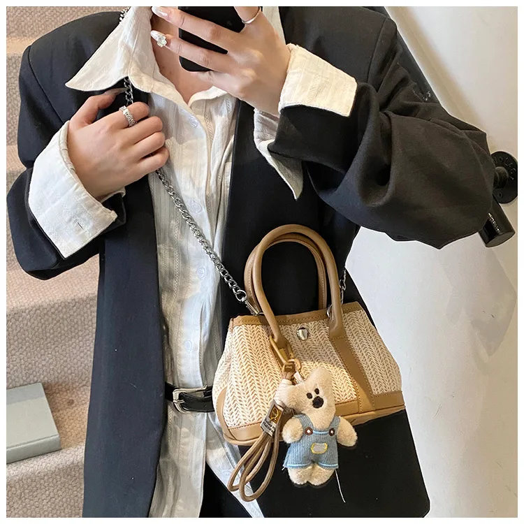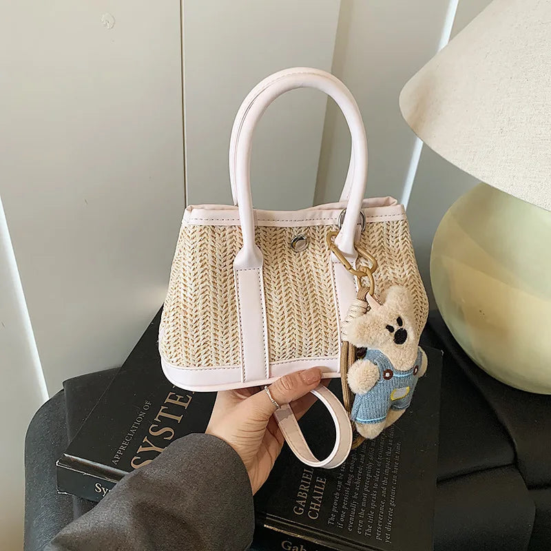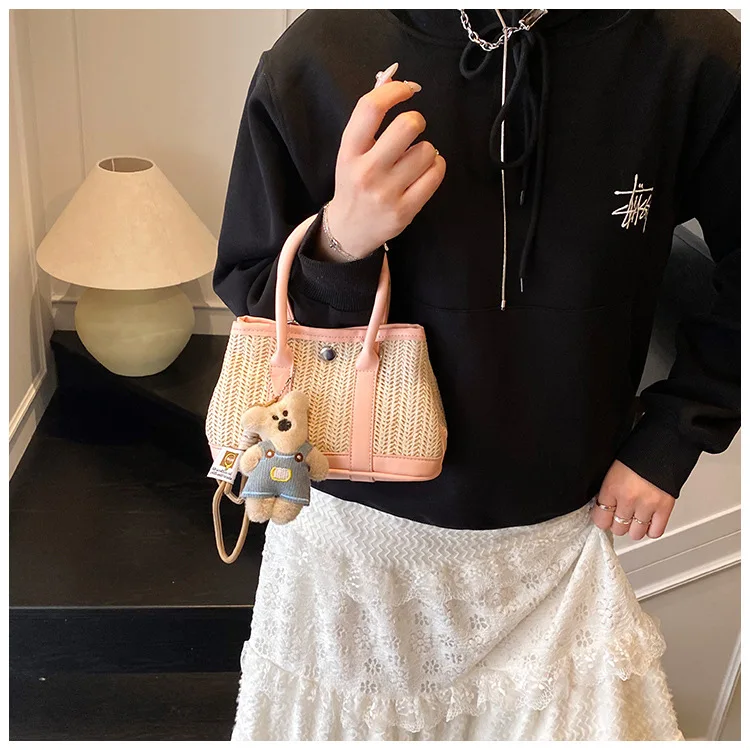 Casual Contrast Color Fashon Lady Straw Handbag for Women Versatile Work Shoulder PU Messenger Bag Women Bags Designer