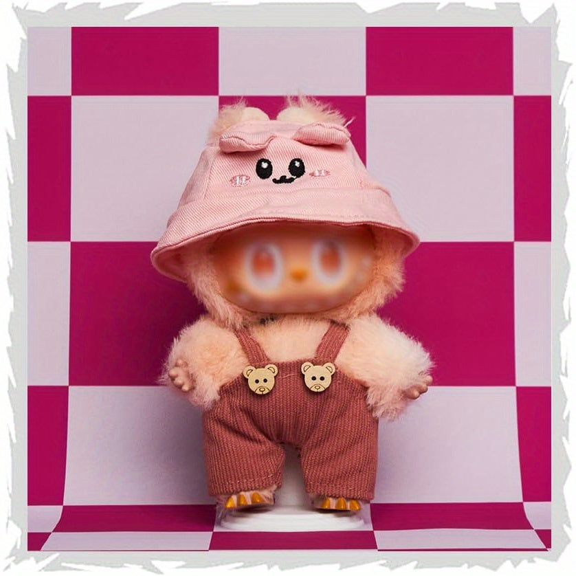 Clothes Set Compatible with Labubu, 6.7 Inches Cute Doll Clothes for Dress up Unique Style- Deep Pink Strap& Pink Rabbit Hat
