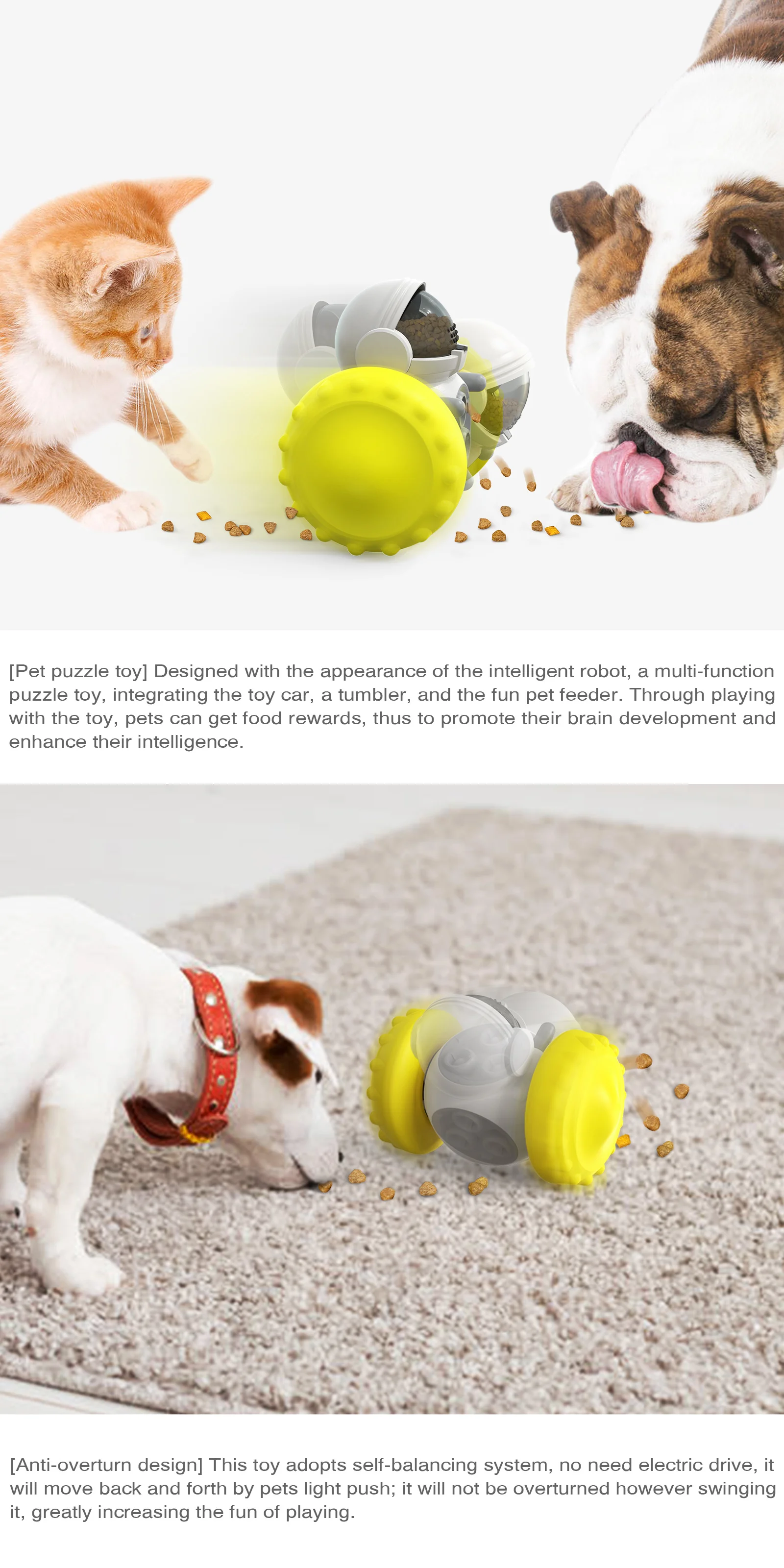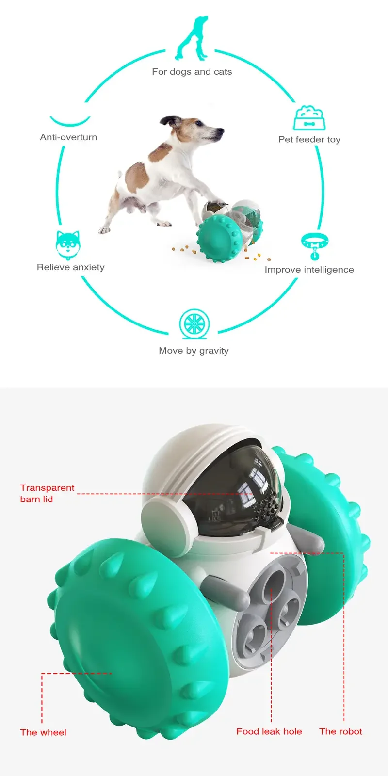 2. The tumbler design principle is adopted, no matter how the dog plays with it, it will not fall down