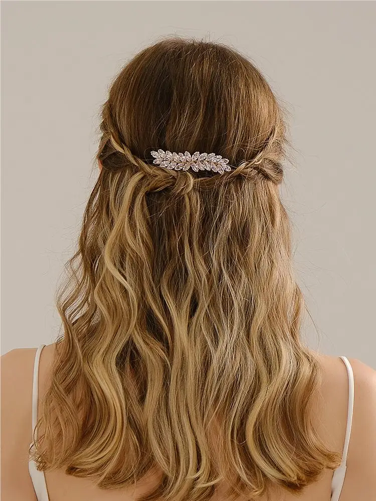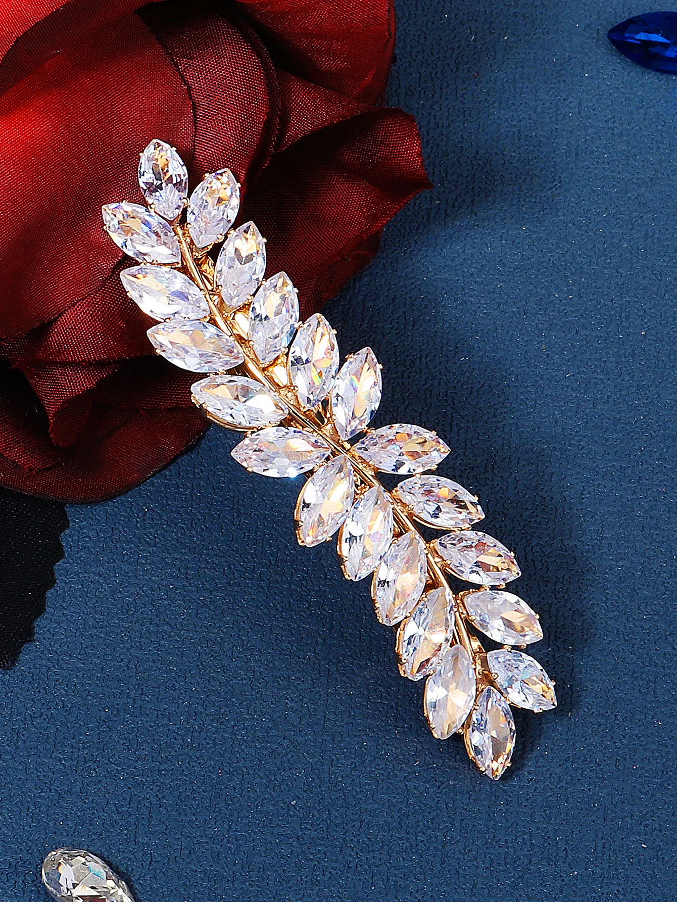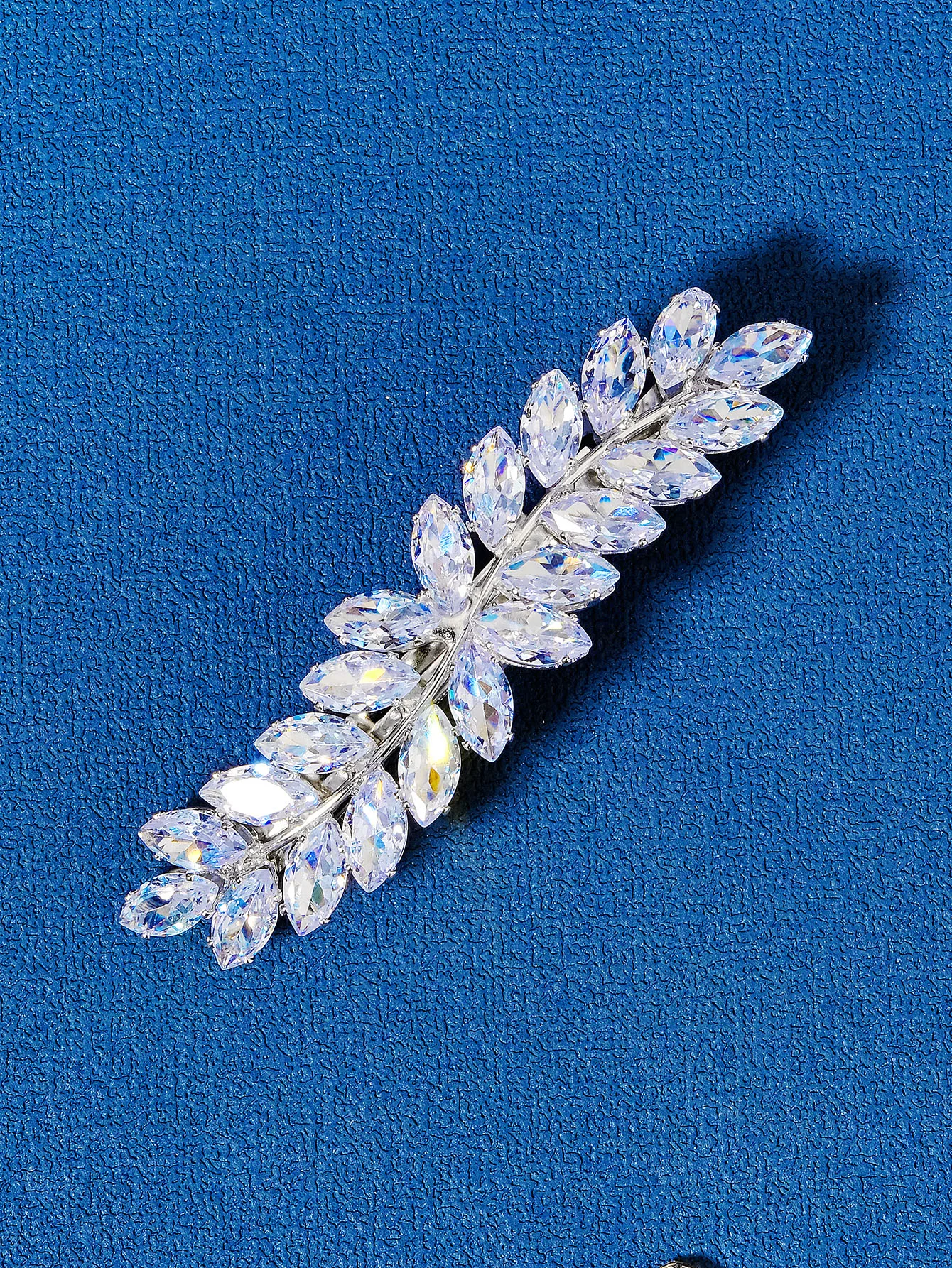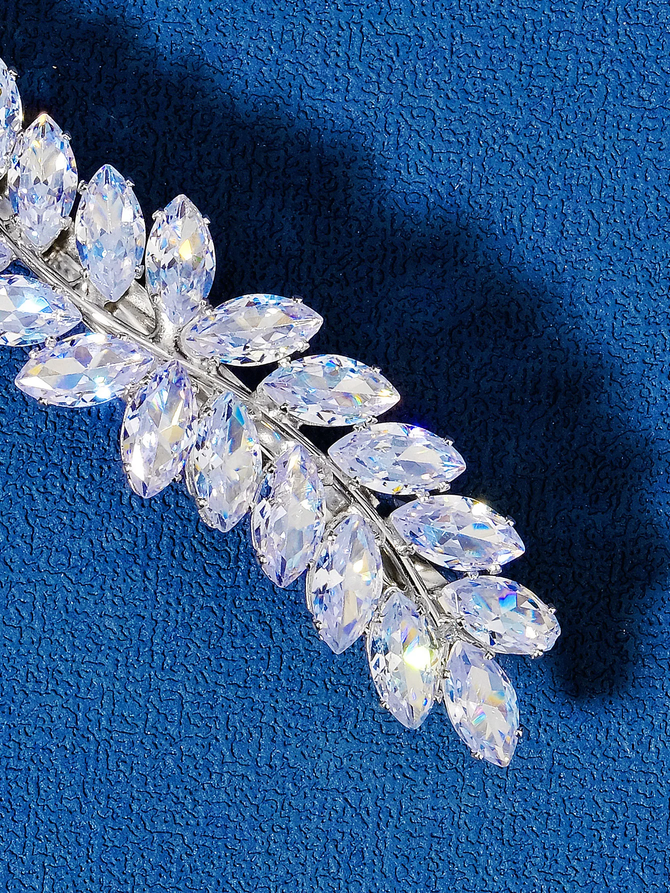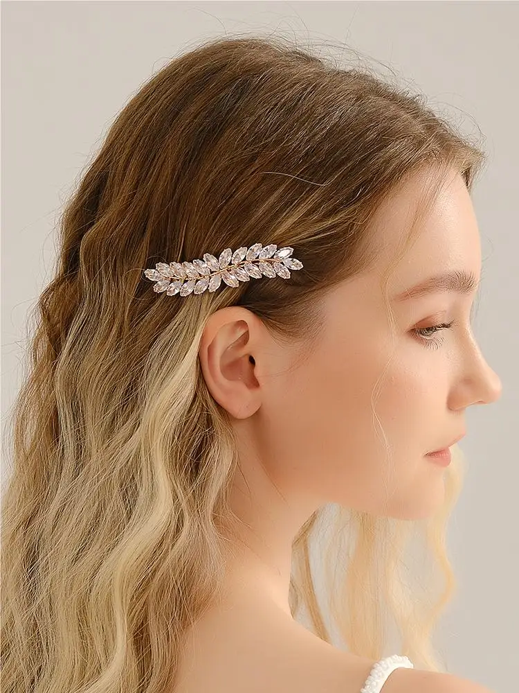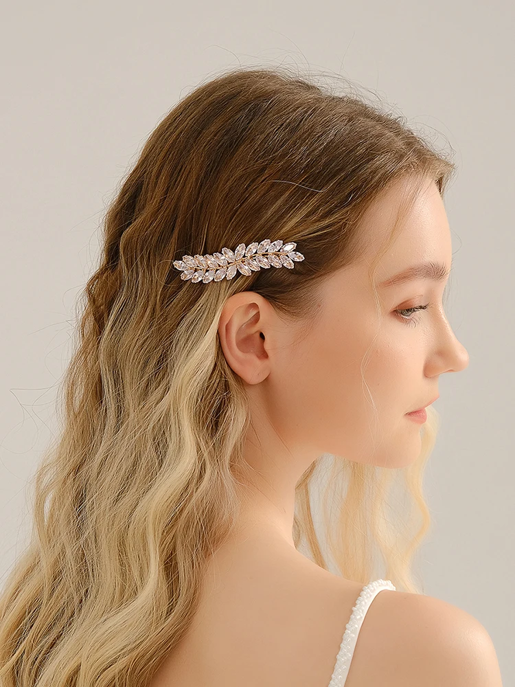 Fashion Barrette Cubic Zirconia Leaf Hair Clips for Women Accessories Bridal Wedding Hair Jewelry Party Bride Headpiece