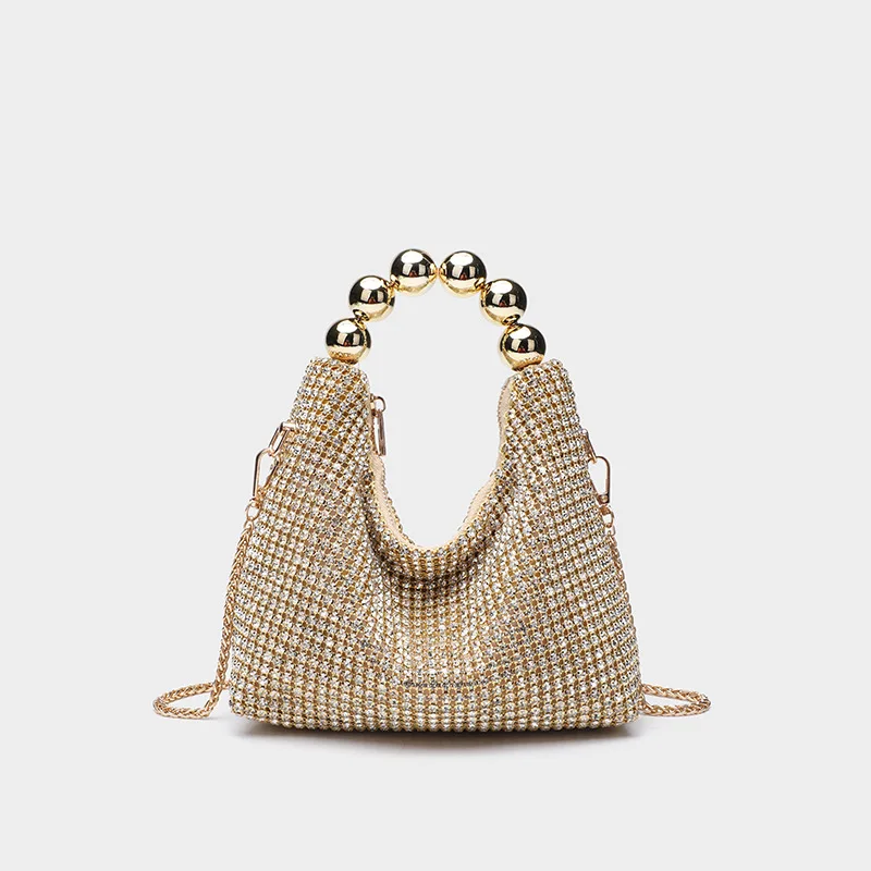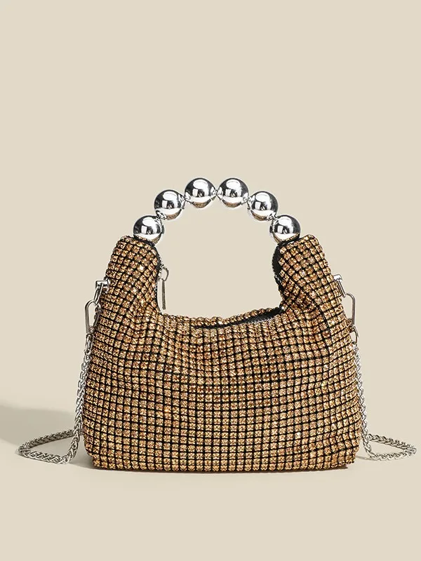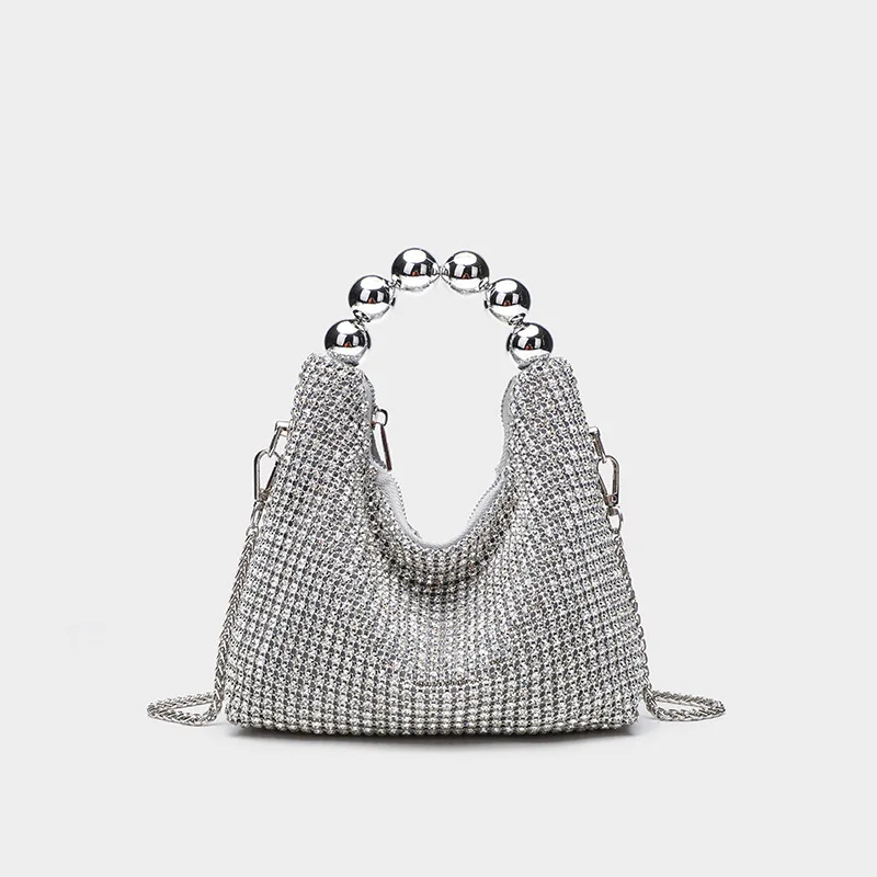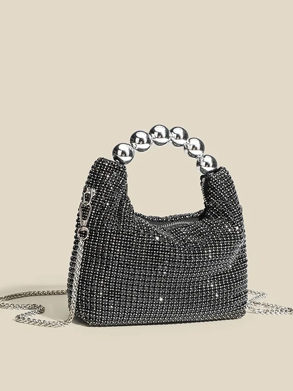 Fashion Single-shoulder Diamond Evening Bag with Pearl Handbags for Women Luxury Designer Bolsas Para Mulheres Zipper Polyester