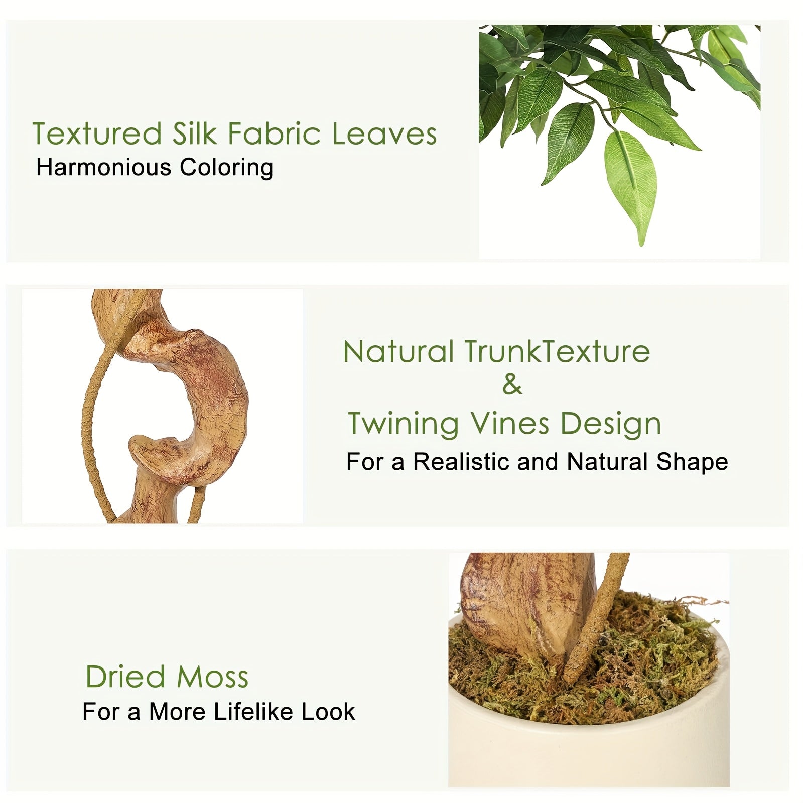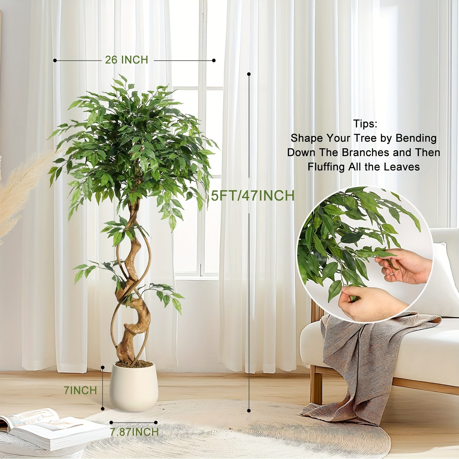Ficus Tree Artificial, 4FT Artificial Plants Indoor In Sturdy White Pot, Indoor Faux Tree For Home Office Decor