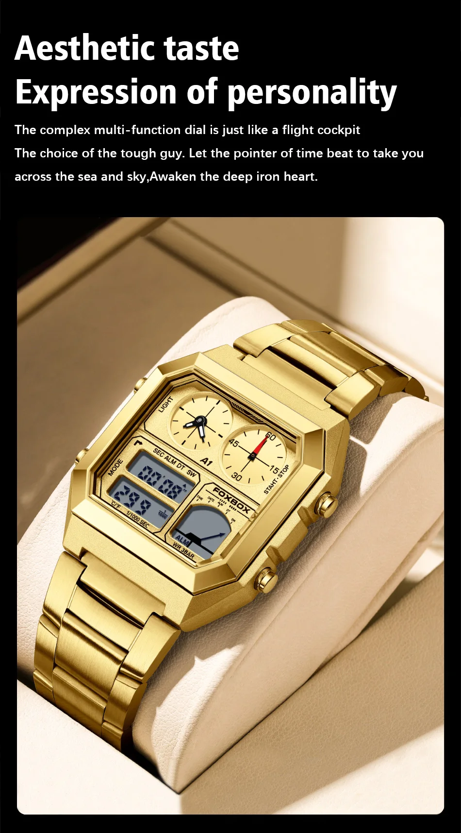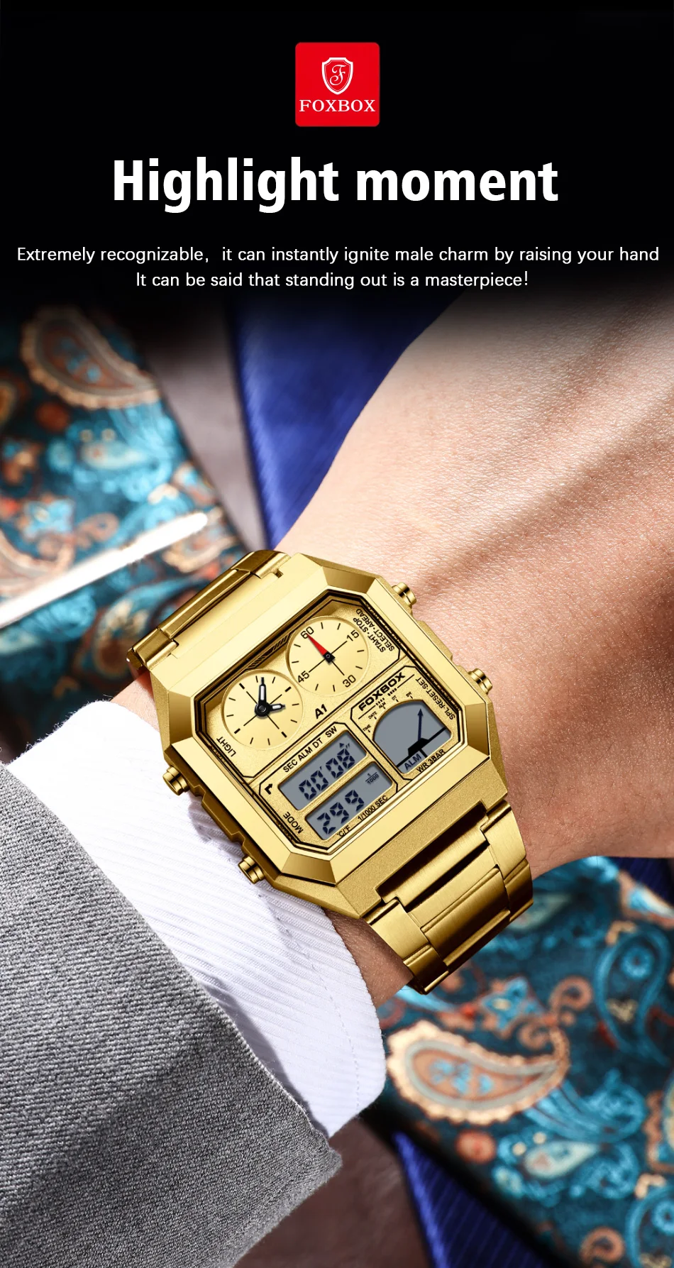 FOXBOX Top Brand Luxury Stainless Steel Chrono Sport Watches Men Back Light Display Digital Wristwatch 3Bar Waterproof Reloj+Box