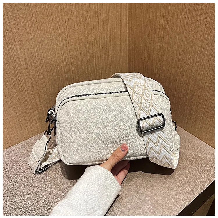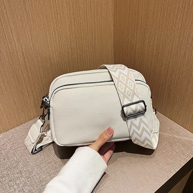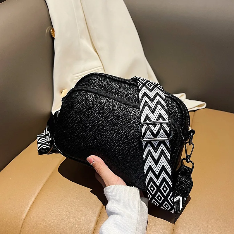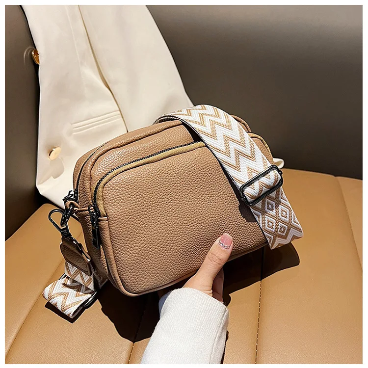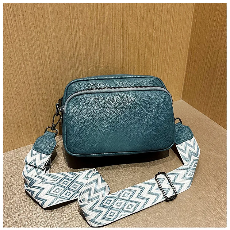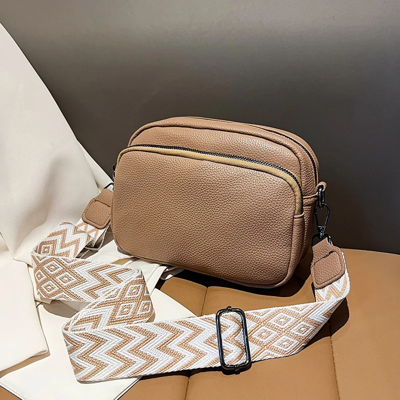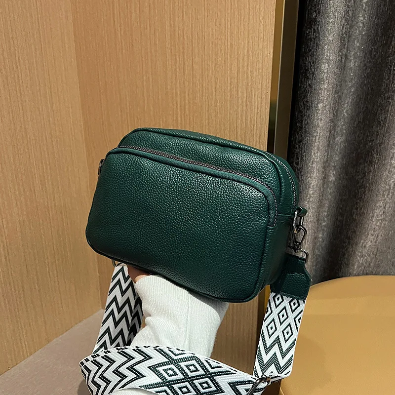 Genuine Leather Women's Bag 2024 New Head Layer Soft Cowhide Trendy Woven Shoulder Bag Casual Wide Shoulder Strap Square Bag