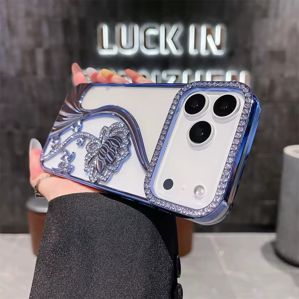 Glitter Rhinestone Flowers Transparent Phone Case For iPhone 17 Pro Max Back Cover-AX