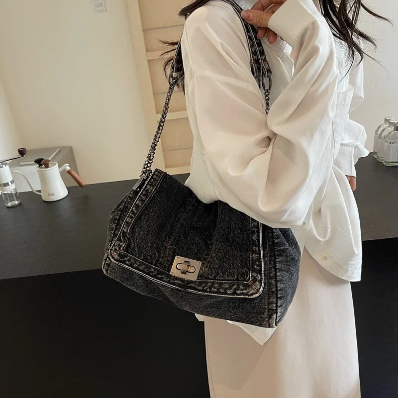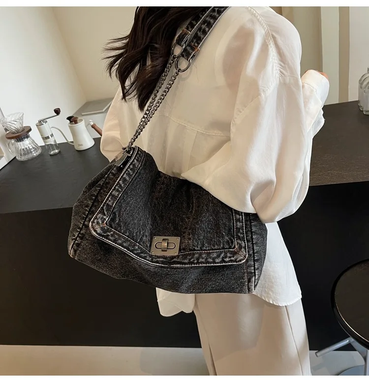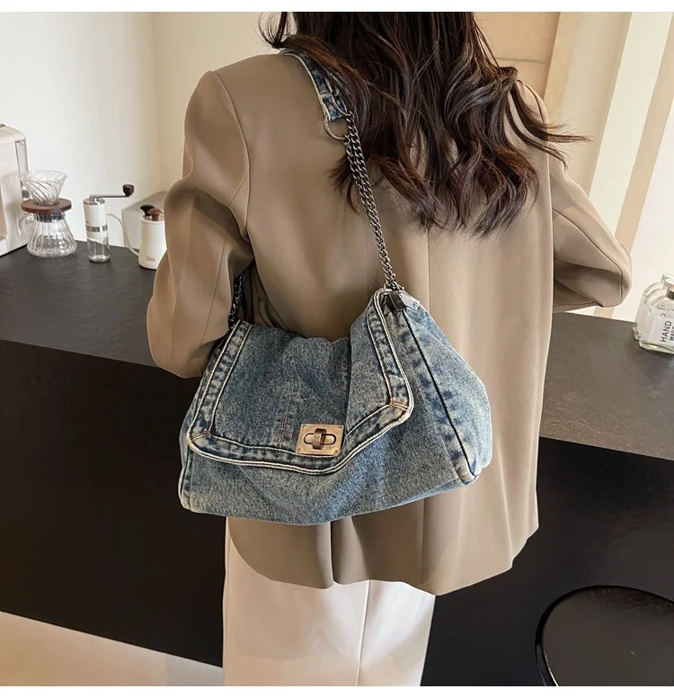 High Quality Denim Women's Crossbody Bag Fashionable Zipper Solid Color Handbag Luxury Tote Bags for Women