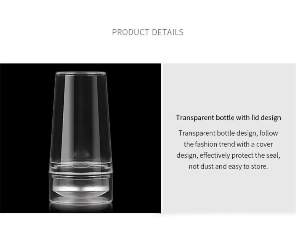4. Transparent bottle body with lid design. The transparent bottle design keeps up with the fashion trend. The cover design effectively protects the seal and does not stick to dust and is easy to store.