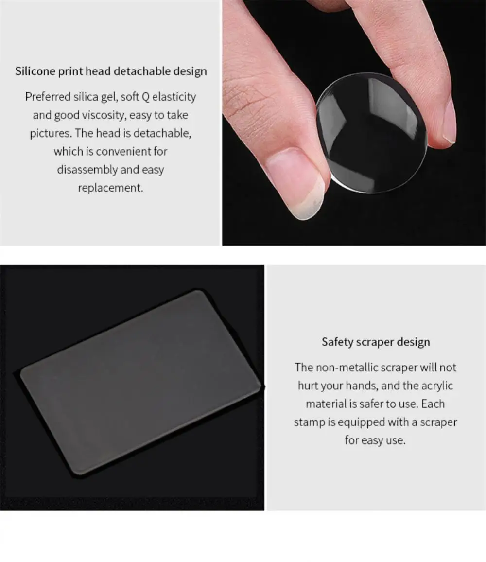 2. The silicone print head is detachable design. Silicone is preferred, soft Q elastic and good viscosity, easy to take pictures. The head is detachable, which is convenient for disassembly and easy replacement.