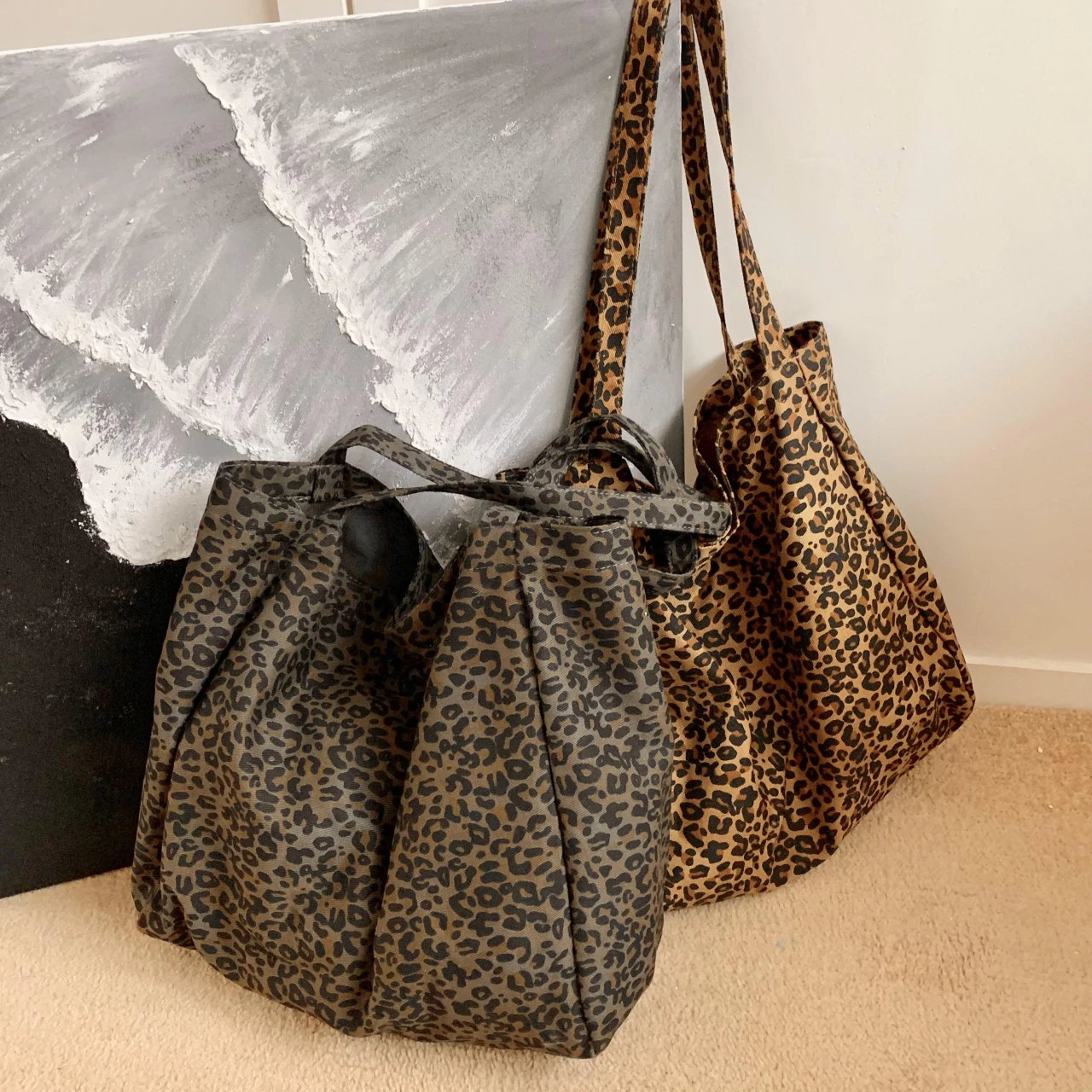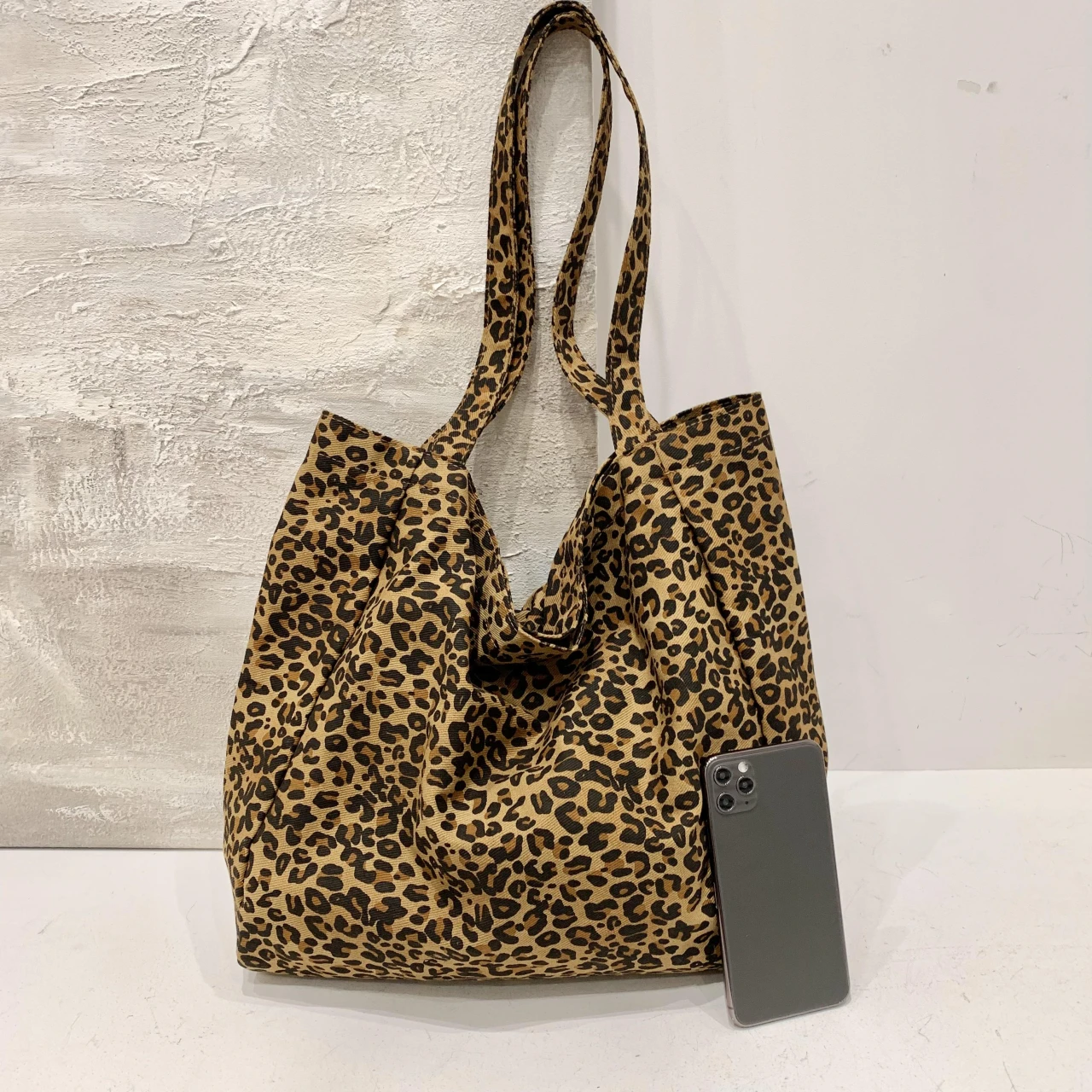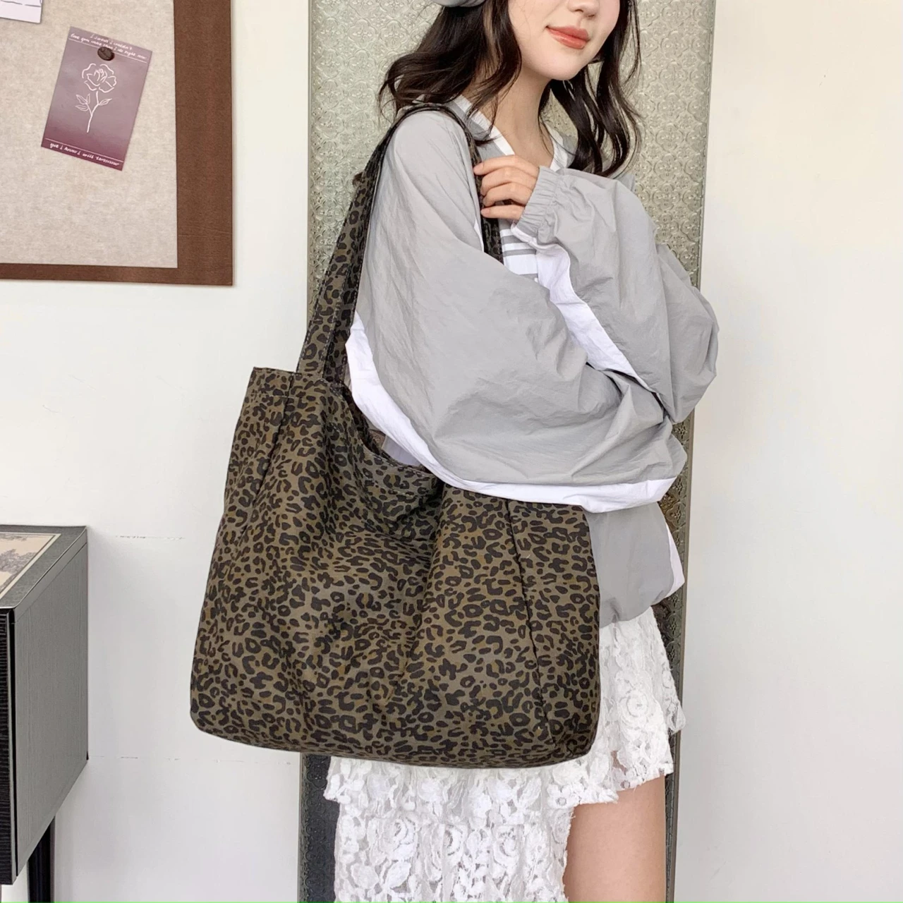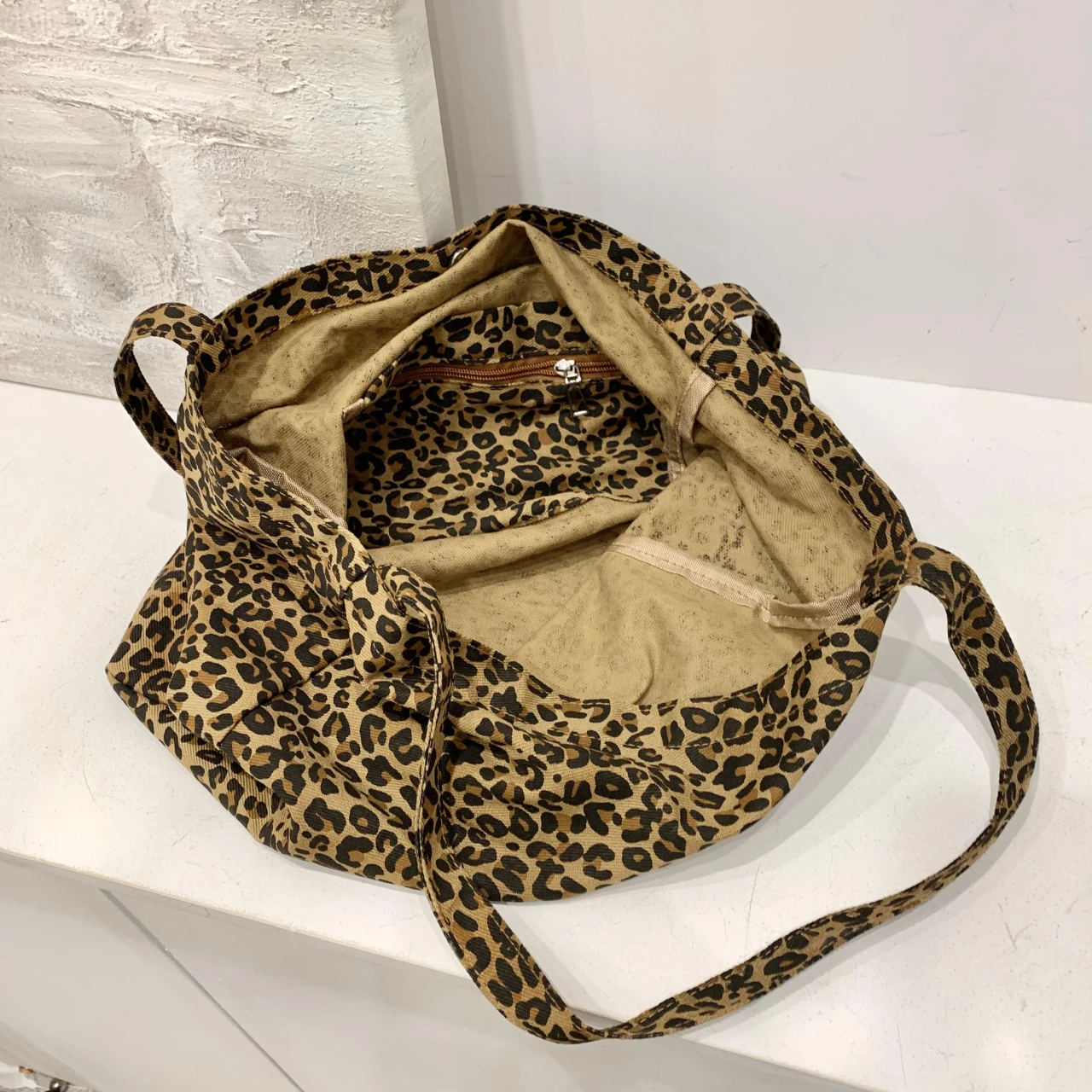 Large capacity leopard canvas bag, fashion trend practical, multi-functional niche shoulder bag