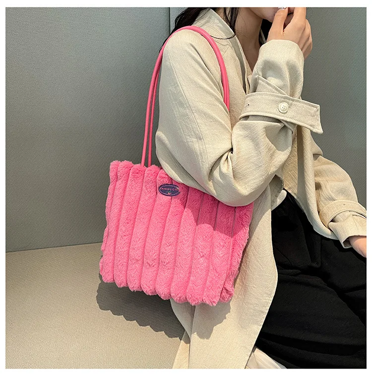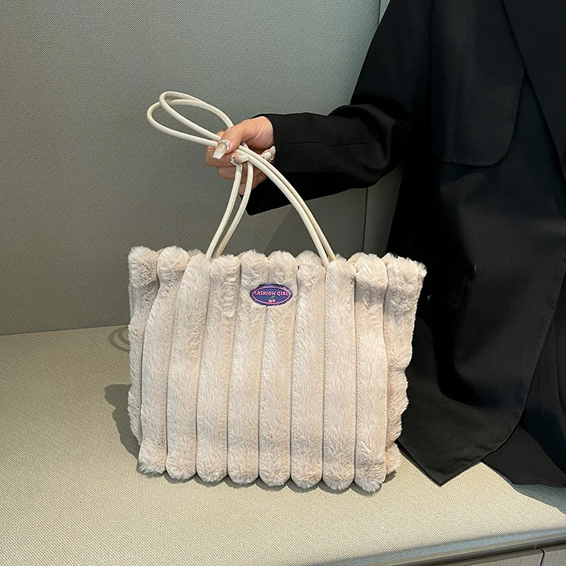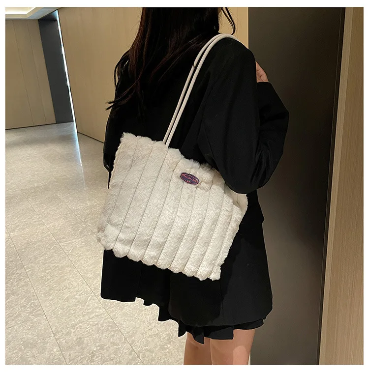 Large Capacity Plush Women's Tote Bag New Fashion and Versatile Shoulder Bag Leisure Ball Pattern Lightweight Woman Bags