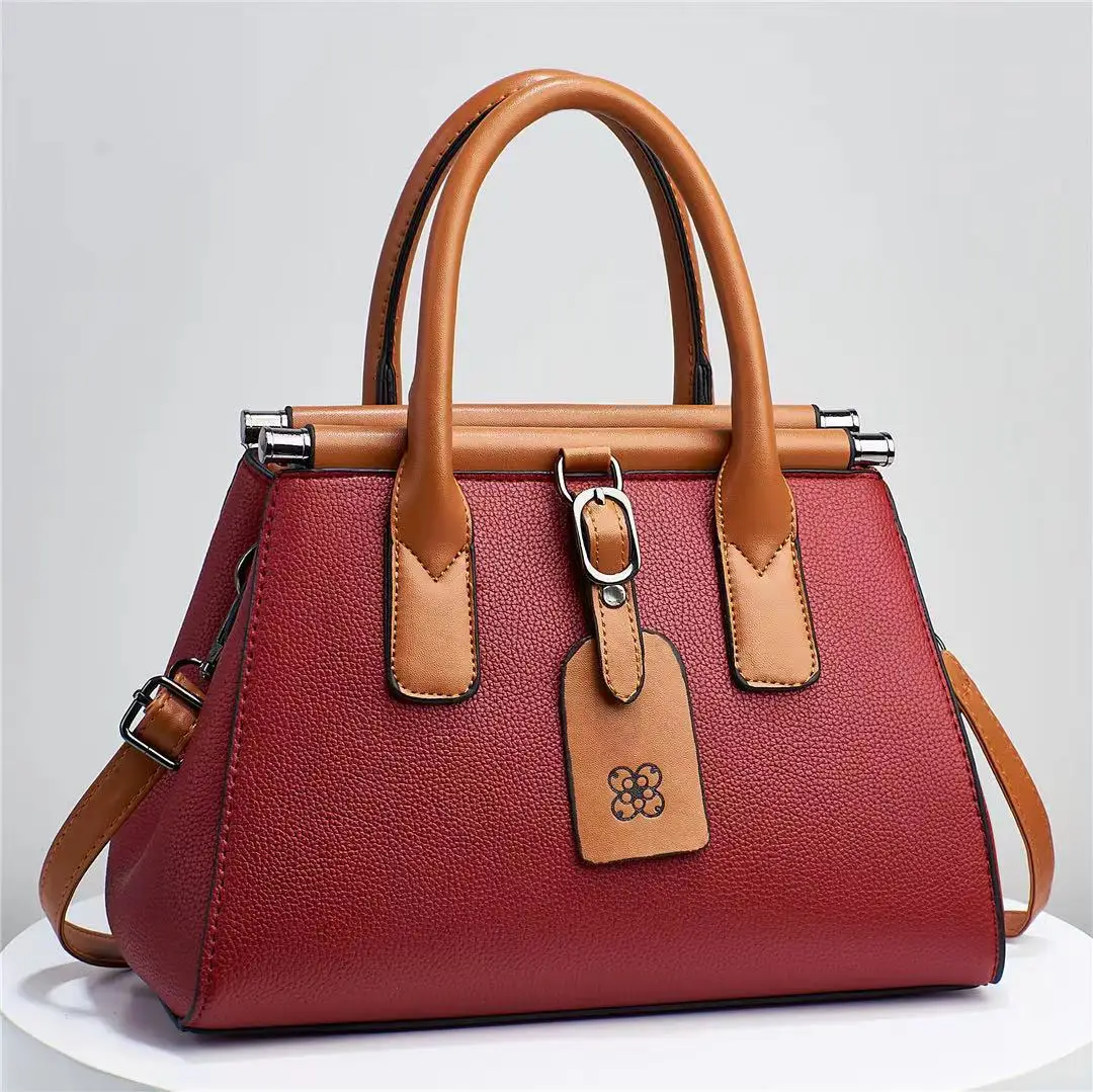 Leather Women's Handbag Luxury Top-Handle Litchi Pattern Womens Leather Tote Bag Simple Female Large Capacity Fashion Handbag