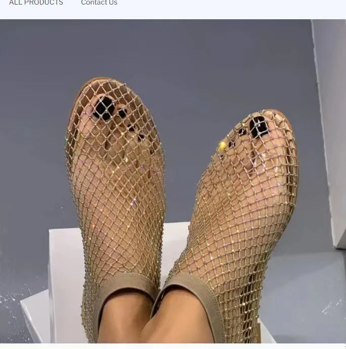 Luxury Women's Sandals Brand Round Toe Flat Bottom sandalias Hollow Short Boots Water Diamond Sexy Flats Women Slippers 2025 New
