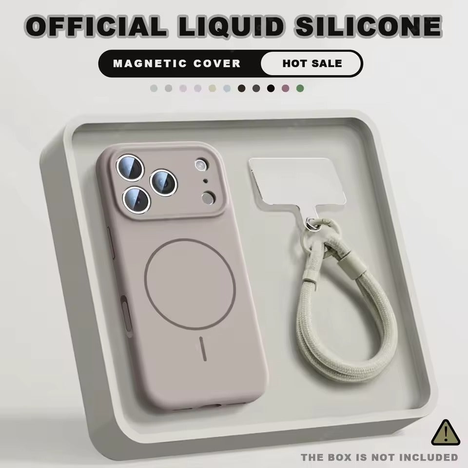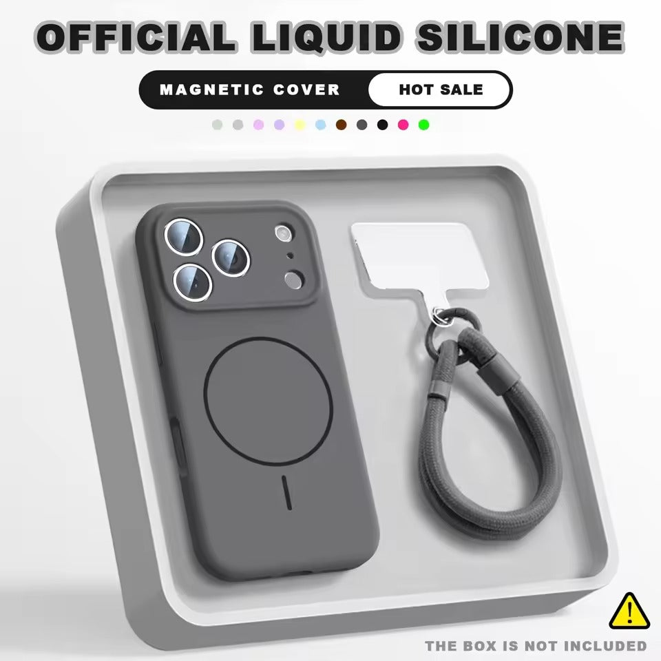 Magnetic Wrist Strap Liquid Silicone Phone Case For iPhone 17 Pro Max Magsafe Lanyard Cover - AX