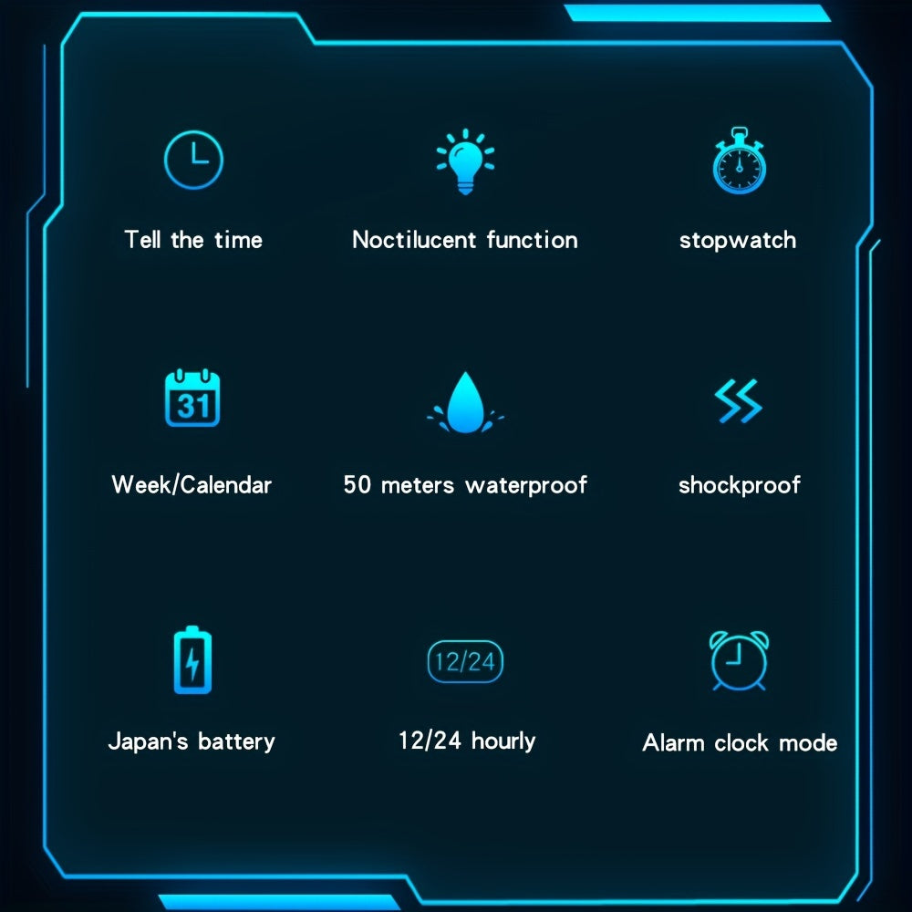 Men's Digital Watch - Sports Watches Tactical Military Stopwatch Alarm 12/24H Outdoor Mens Wristwatch for Running - Durable Stainless Steel & Silicone - For Active Men - Ideal for Sports & Outdoor Activities - Great Gift for Adventurers