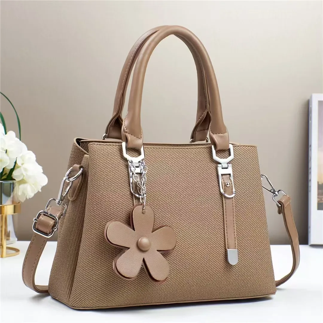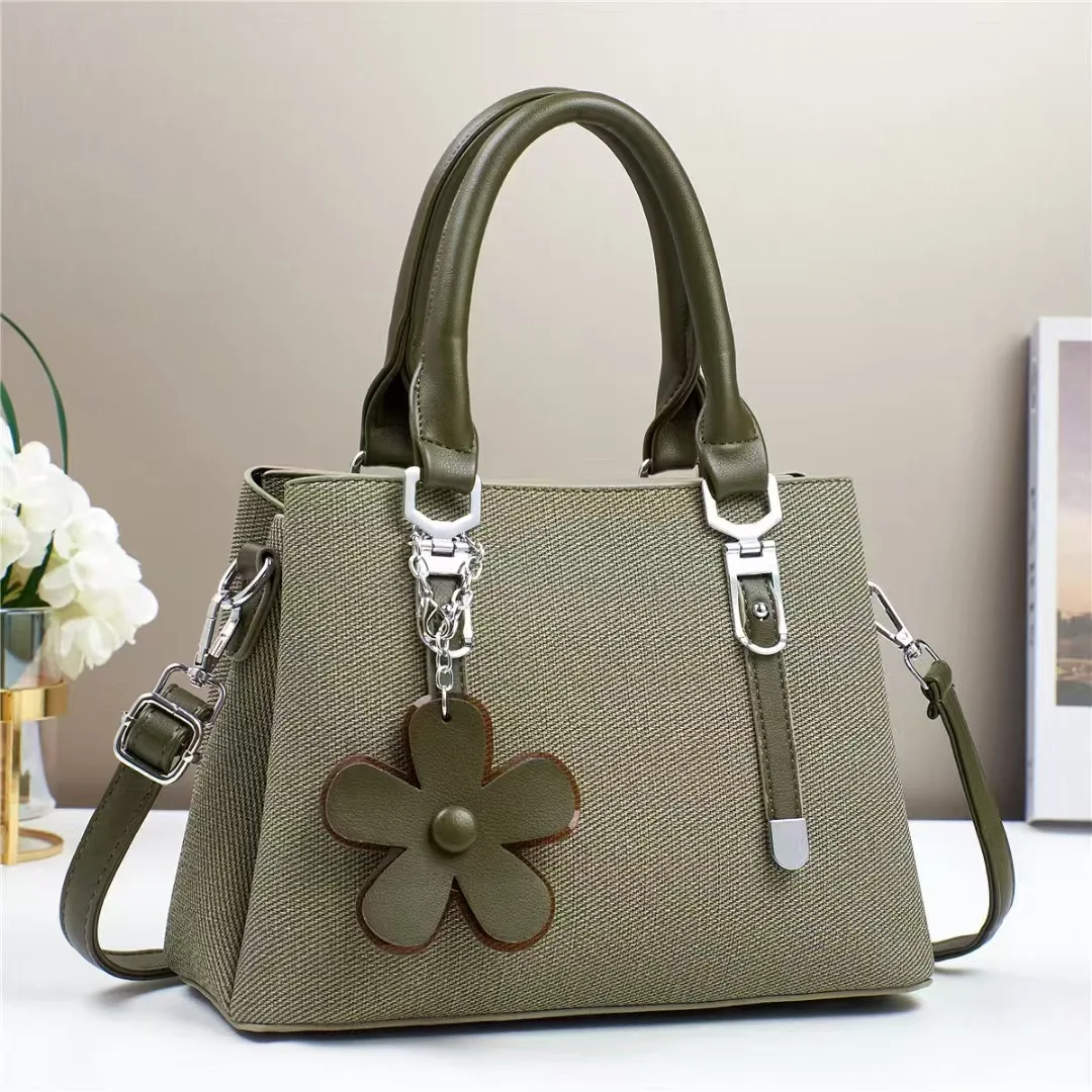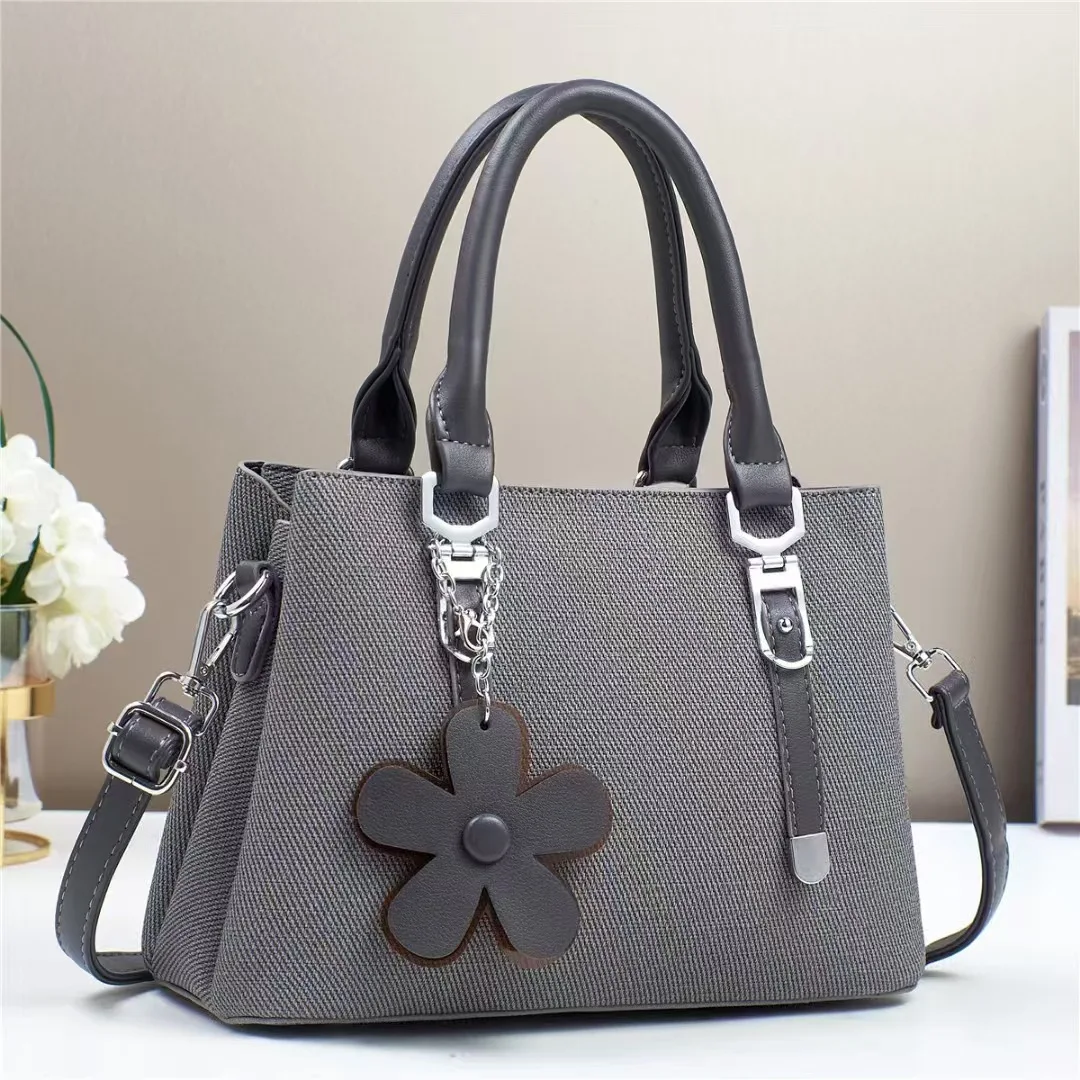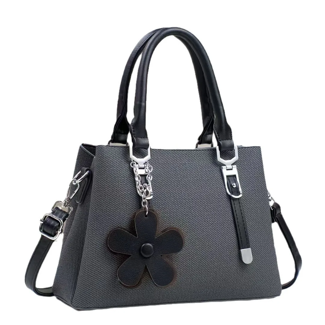 Minimalist Stylish PU Handbags Classical Pure Color Single Shoulder New Crossbody Bag Flower Pendant Fashion Bags for Women