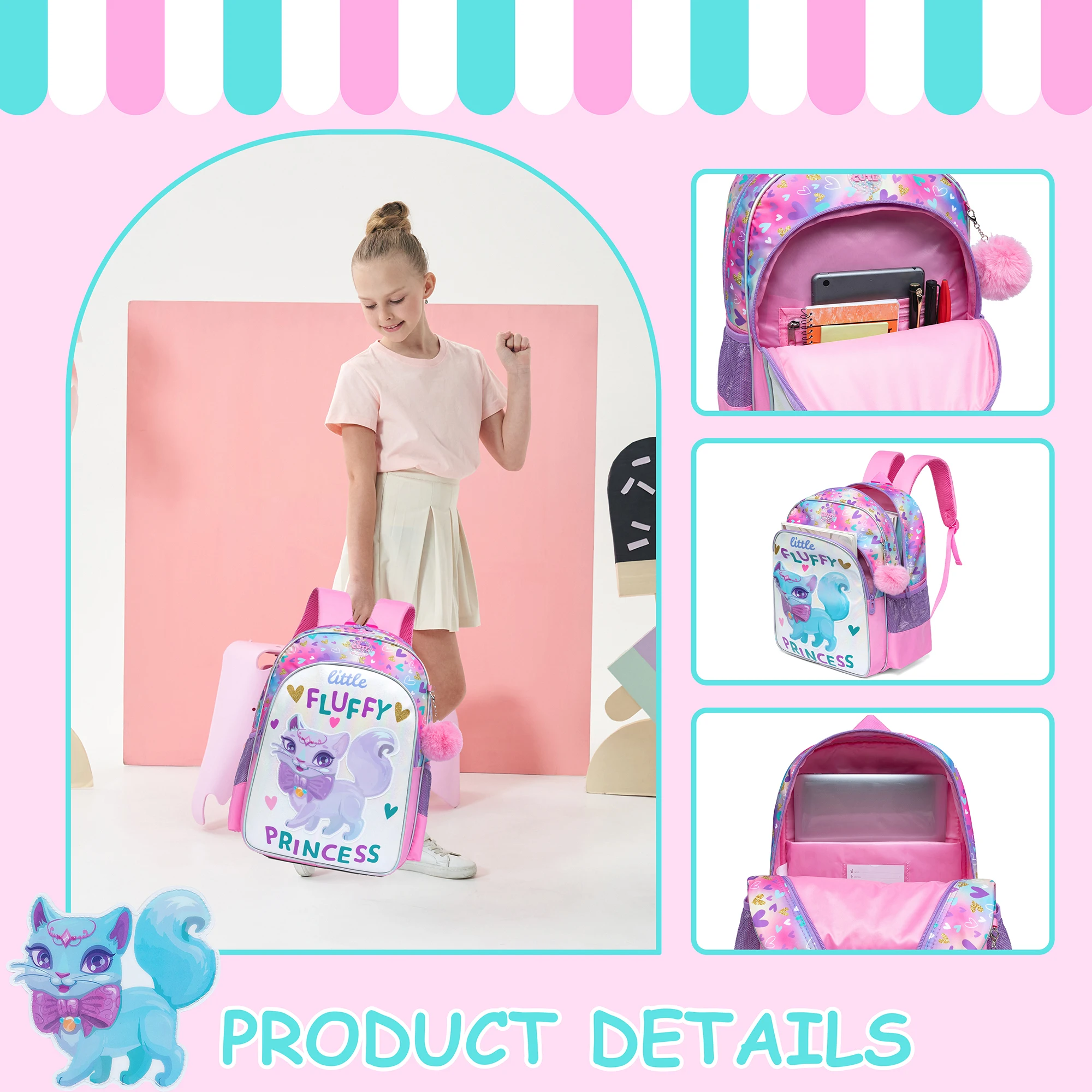 Ampla aplicação - A mochila possui zíperes suaves para as crianças abrirem e fecharem facilmente. A linda mochila escolar com lancheira é ideal para diversas ocasiões como escola, viagens, caminhadas e camping, turismo. Esta linda mochila é a melhor escolha para meninas adolescentes.