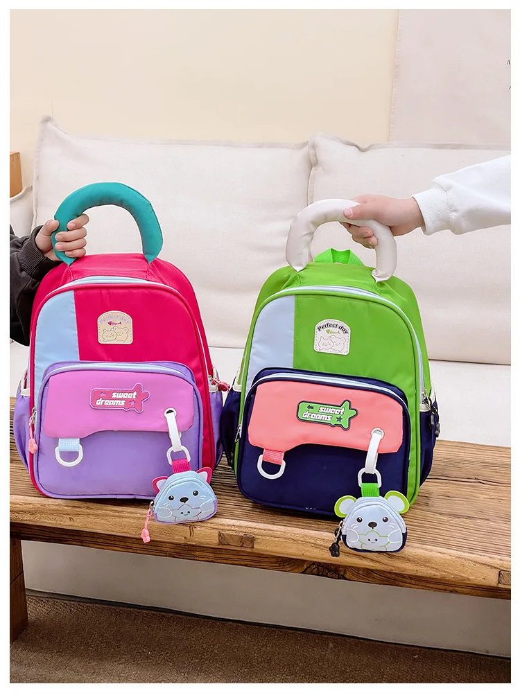 New Children's School Bag Kindergarten Primary and Secondary Class Boys and Girls Color-blocked Backpack Casual Useful Backpack