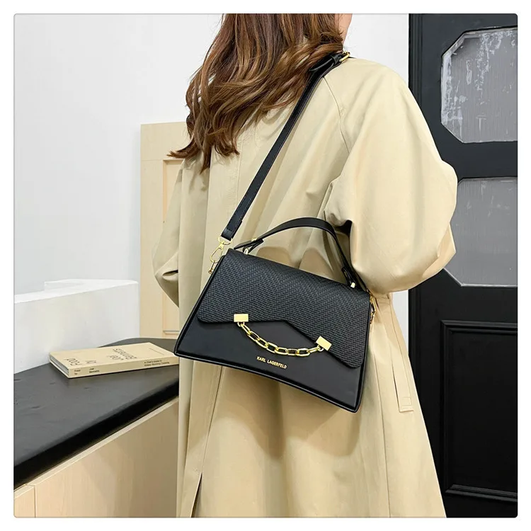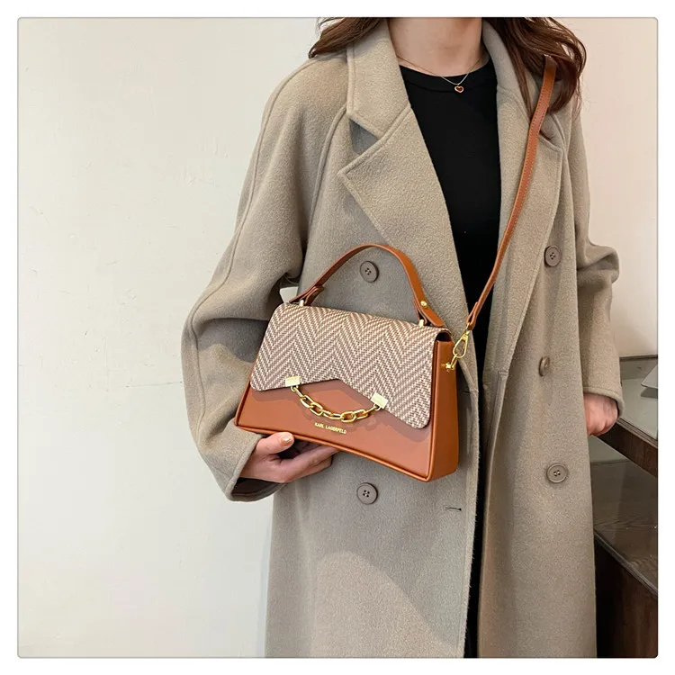 New Trendy and Versatile Box Pattern Handbag for Women High-quality Small Shoulder Bag PU Material Cover Closure Women's Bags