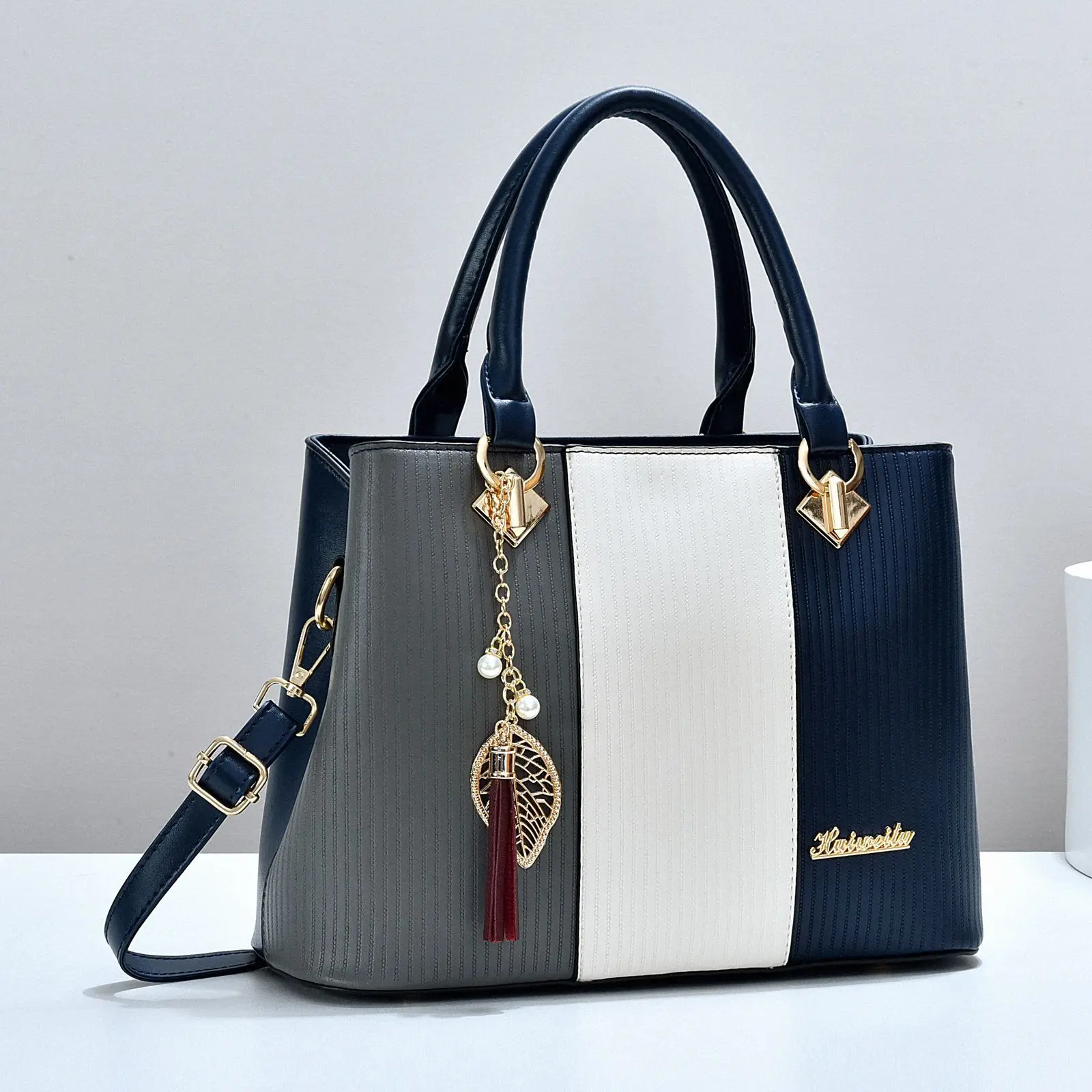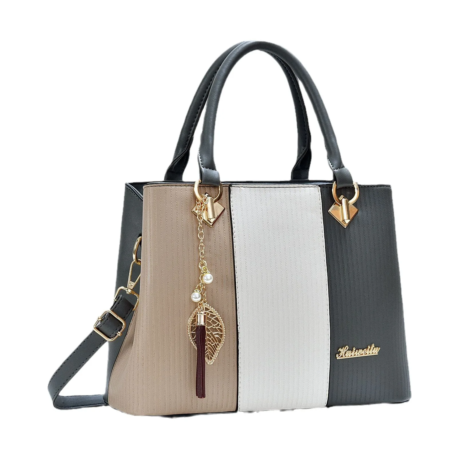 New Version Handbag Versatile Shoulder Bag PU Medium Striped Crossbody Bag All Seasons Fashion Bags for Women