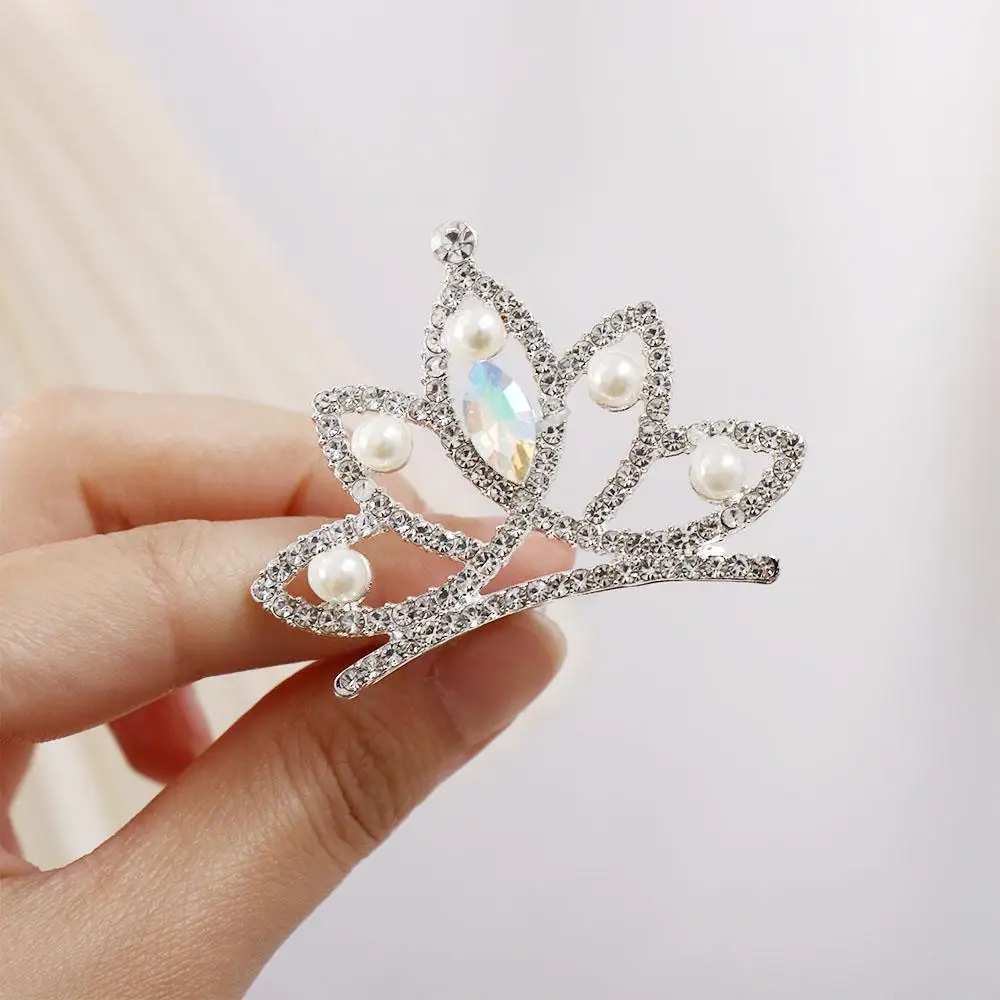 Pearl Crystal Crown Hair Comb Butterfly Flower Children Tiara Headband Wedding Jewelry Rhinestone Hairpins Kids Headwear