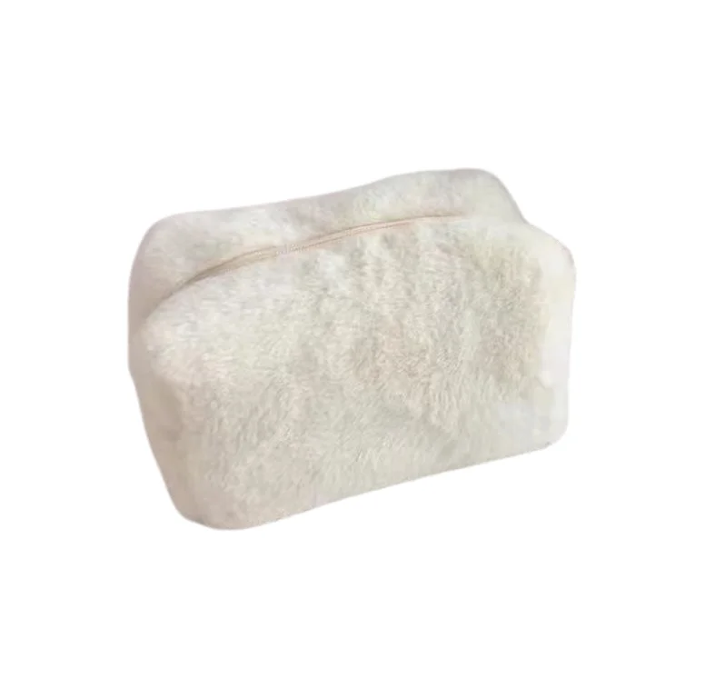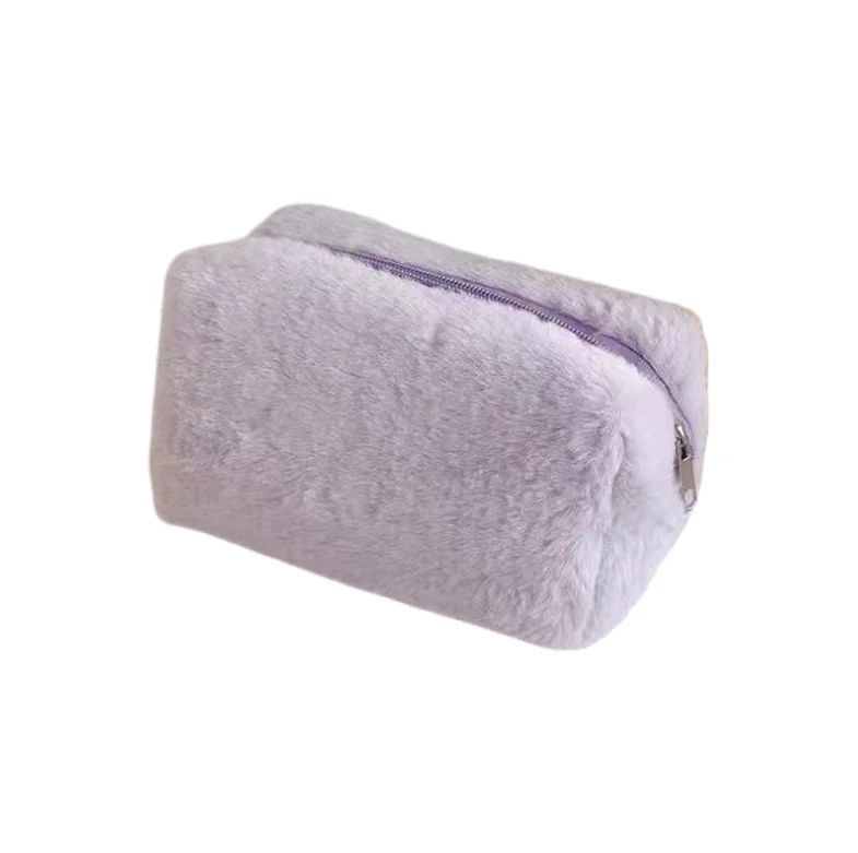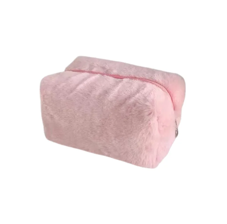 Plush Macaron-colored Makeup Bag Sweet Large-capacity Storage Bag Plush Material Zipper Closure Daily-use Medium Cosmetic Bags