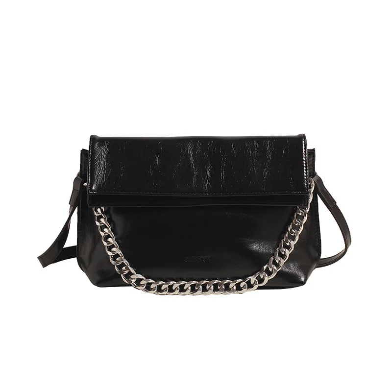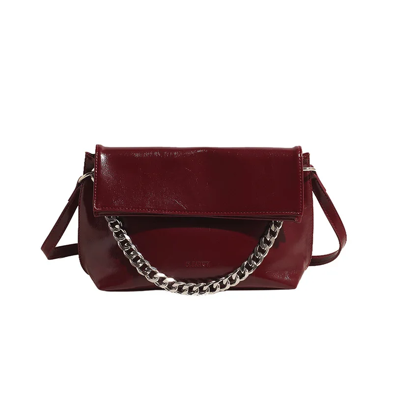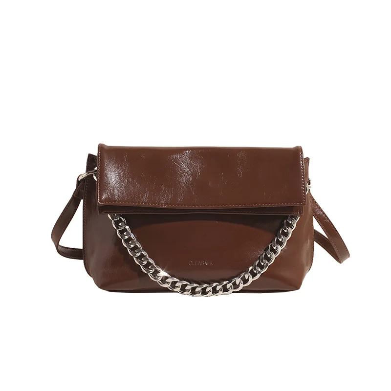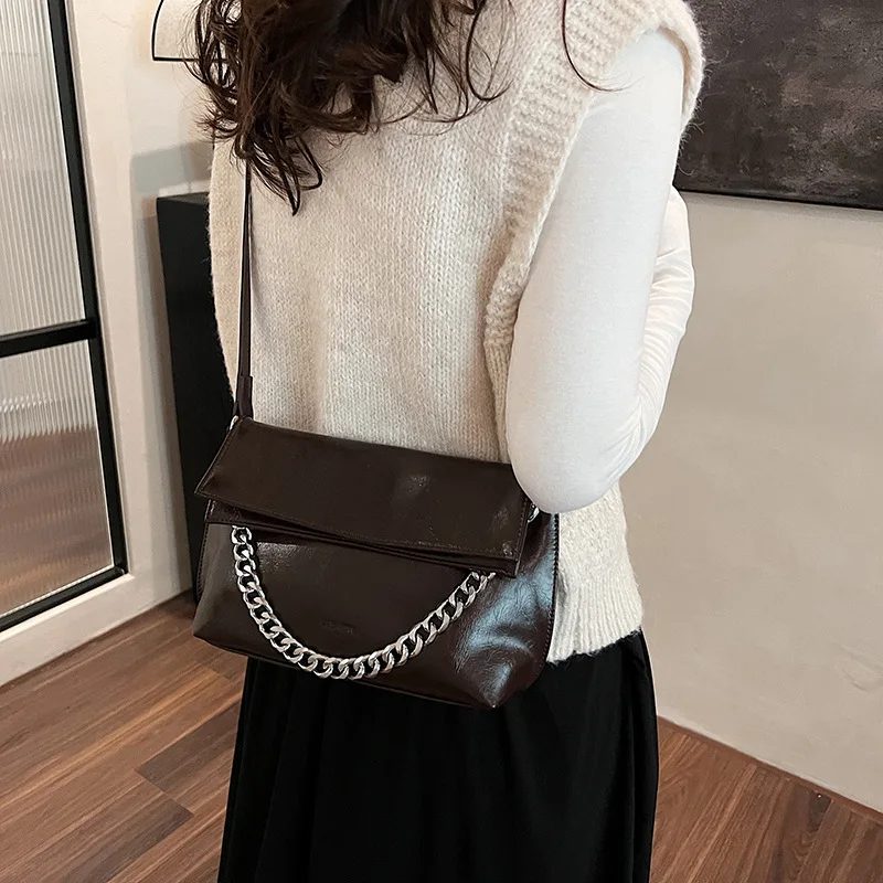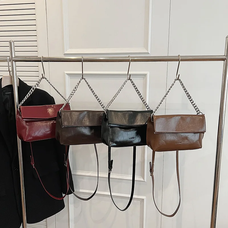 Premium Sense of Bag Female 2024 New Oil Waxed Leather Chain Crossbody Bag Fashion Korean Version of the Casual Shoulder Bag