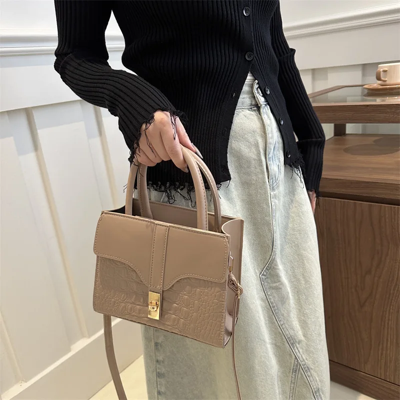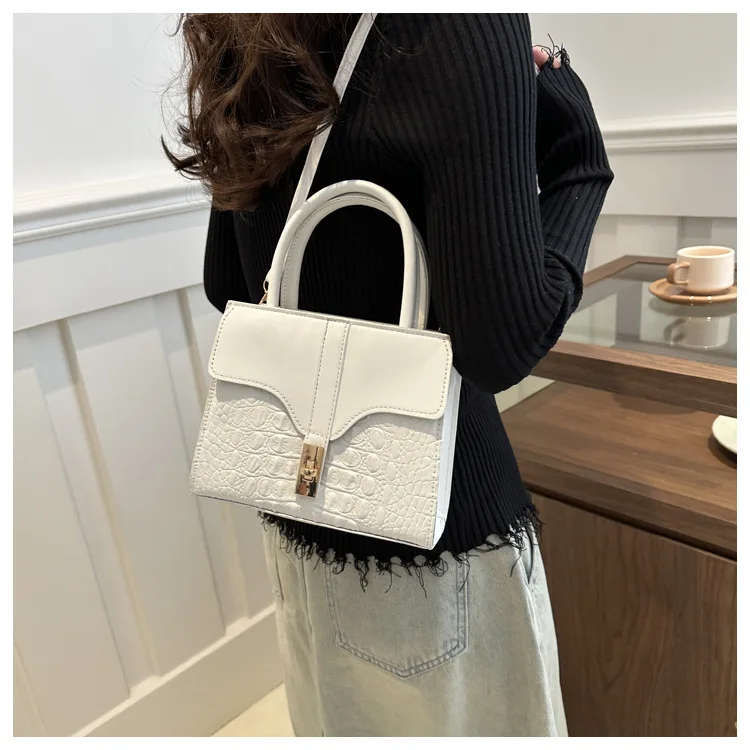 PU High-quality Lock Small Square Bag Spring and Autumn New Versatile Women's Handbag Multi-color Crocodile Handbag Design