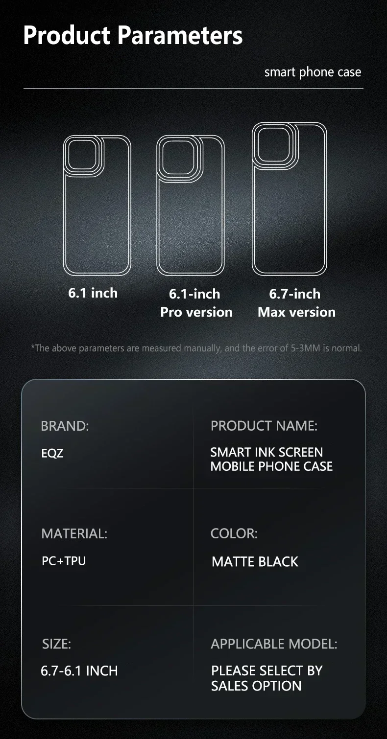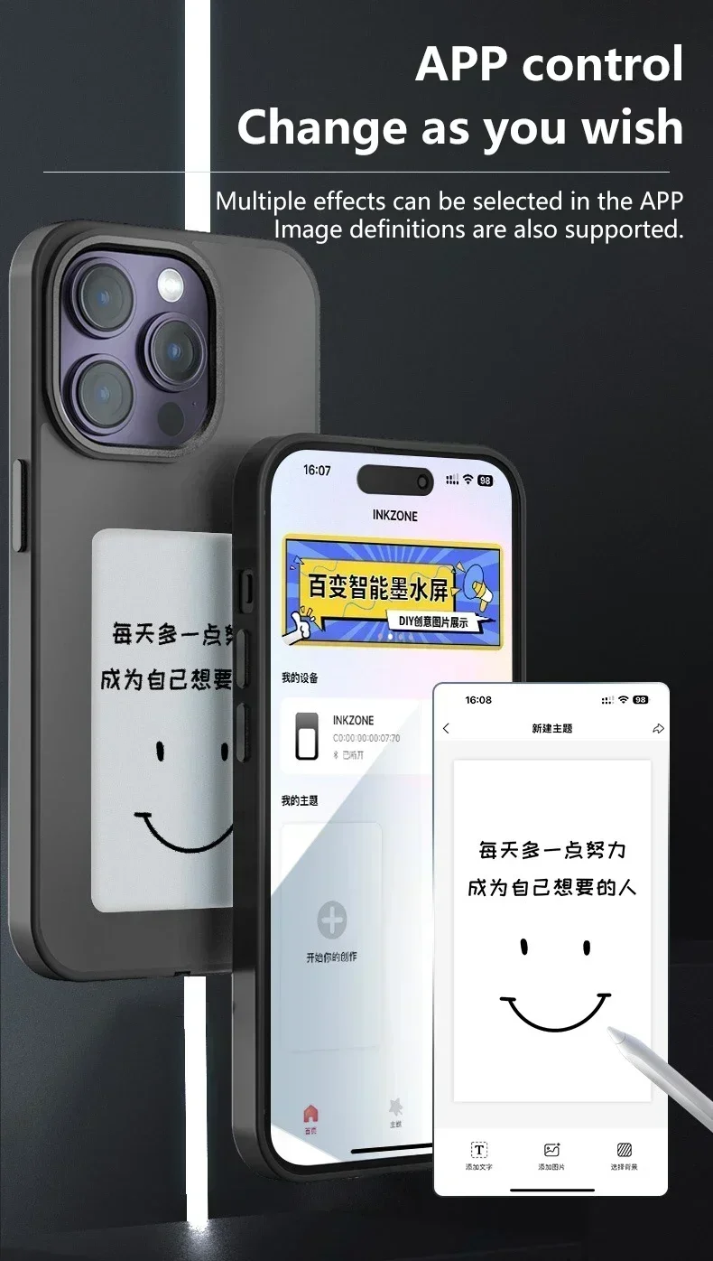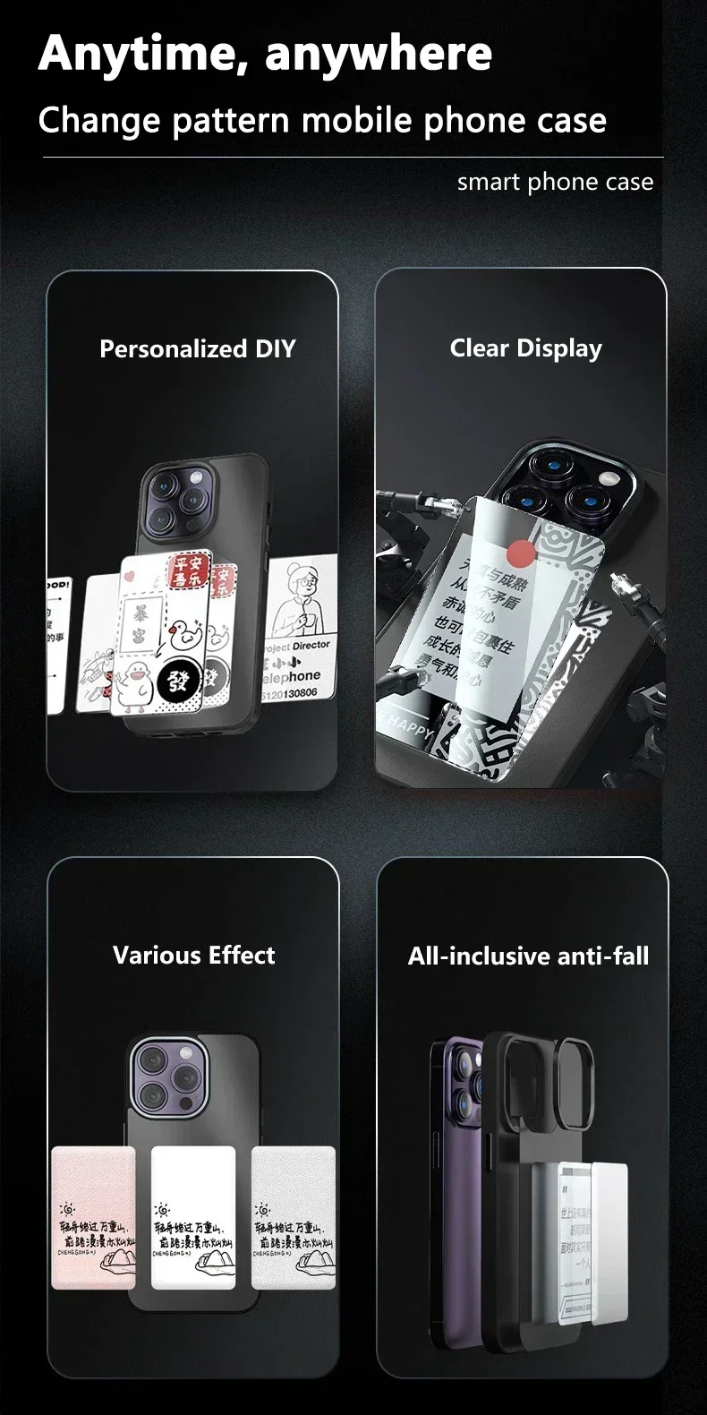 For iPhone Phone Case DIY Smart Display Customized Ink Screen Glass Projection Cover